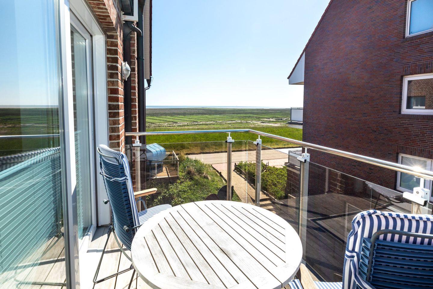 Der Balkon auf der Westseite (ca. 5m²) bietet Blick in die Dünenlandschaft und zur Wattseite.