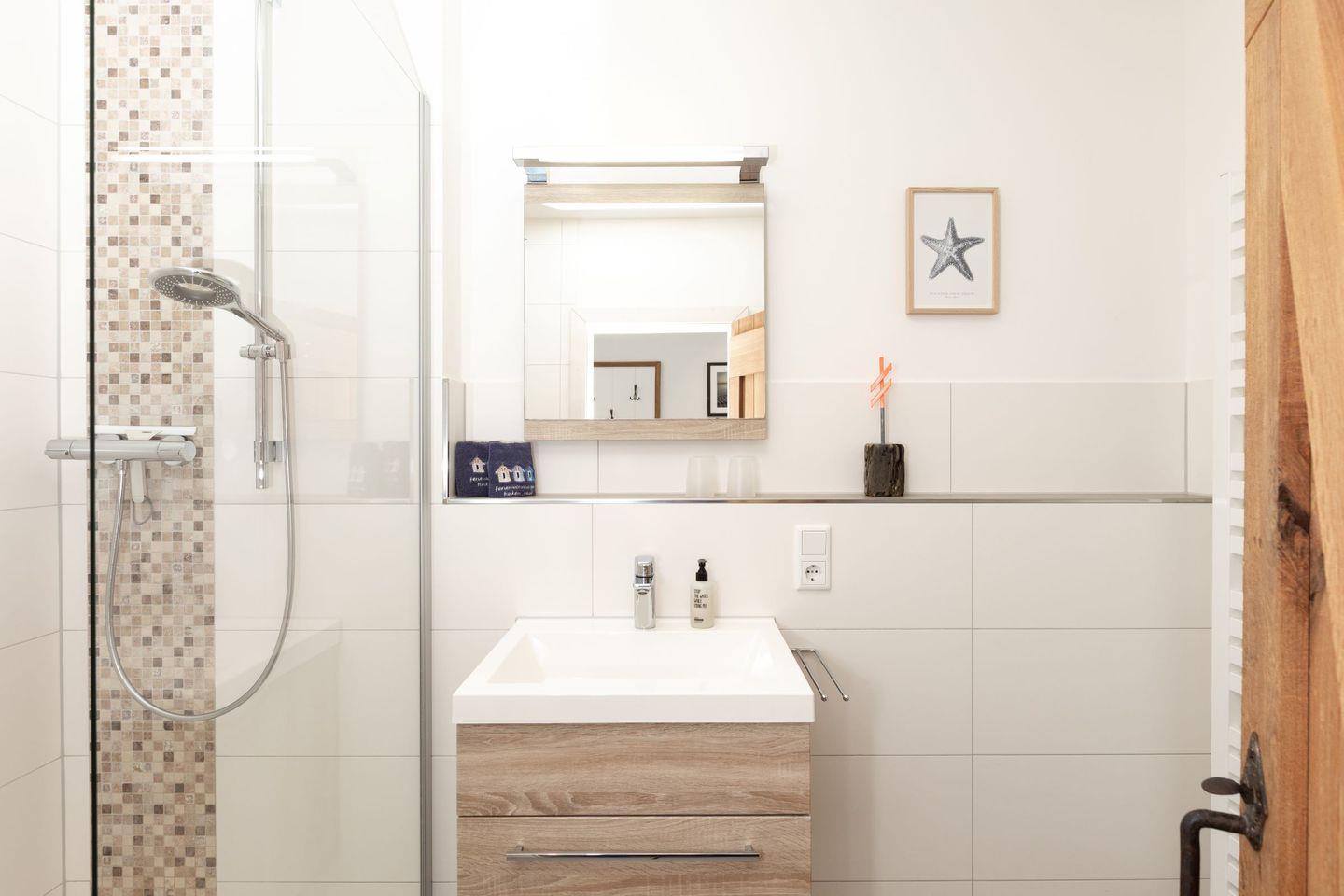 Das Badezimmer ist mit einer Dusche ausgestattet. Grundsätzlich sind Fön, sowie Handtücher/Duschtücher vorhanden.