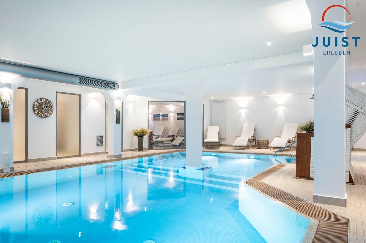 Im Untergeschoss des Hauses stehen Ihnen das Schwimmbad und die Sauna zur Verfügung, die sogar im Mietpreis enthalten sind, was zusätzliche Entspannung für die ganze Familie bietet.