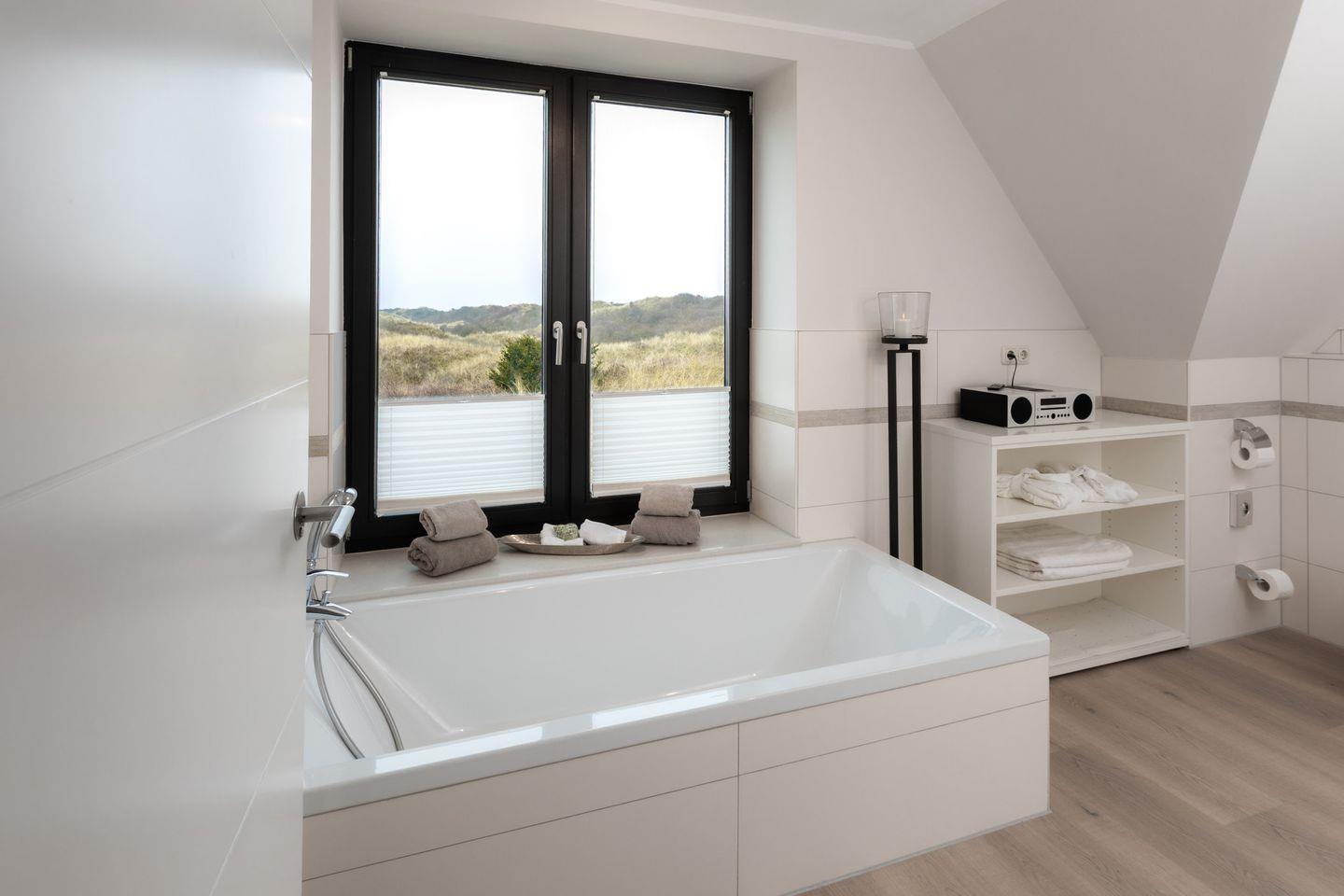 Traumhaftes Reetdachhaus (2-8 Pers.) direkt am Strandaufgang. Moderne friesische Einrichtung, 4 Schlafzimmer (alle mit TV), 4 Bäder (Badewanne), Große Wohnküche mit Kamin, gemütlicher Wohnbereich mit Dünenblick, Balkon, Terrasse mit Strandkorb. Hauswirtschaftsraum mit Waschmaschine und Trockner. Gemeinschafts-Grillplatz vorhanden. Hunde willkommen. Perfekte Lage zwischen Zentrum & Loog.