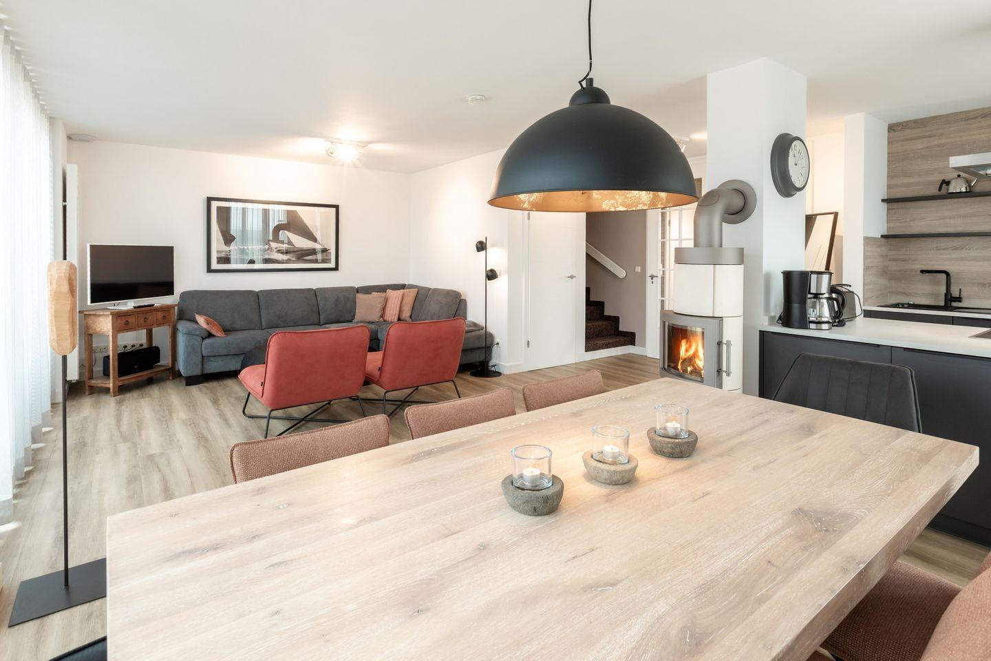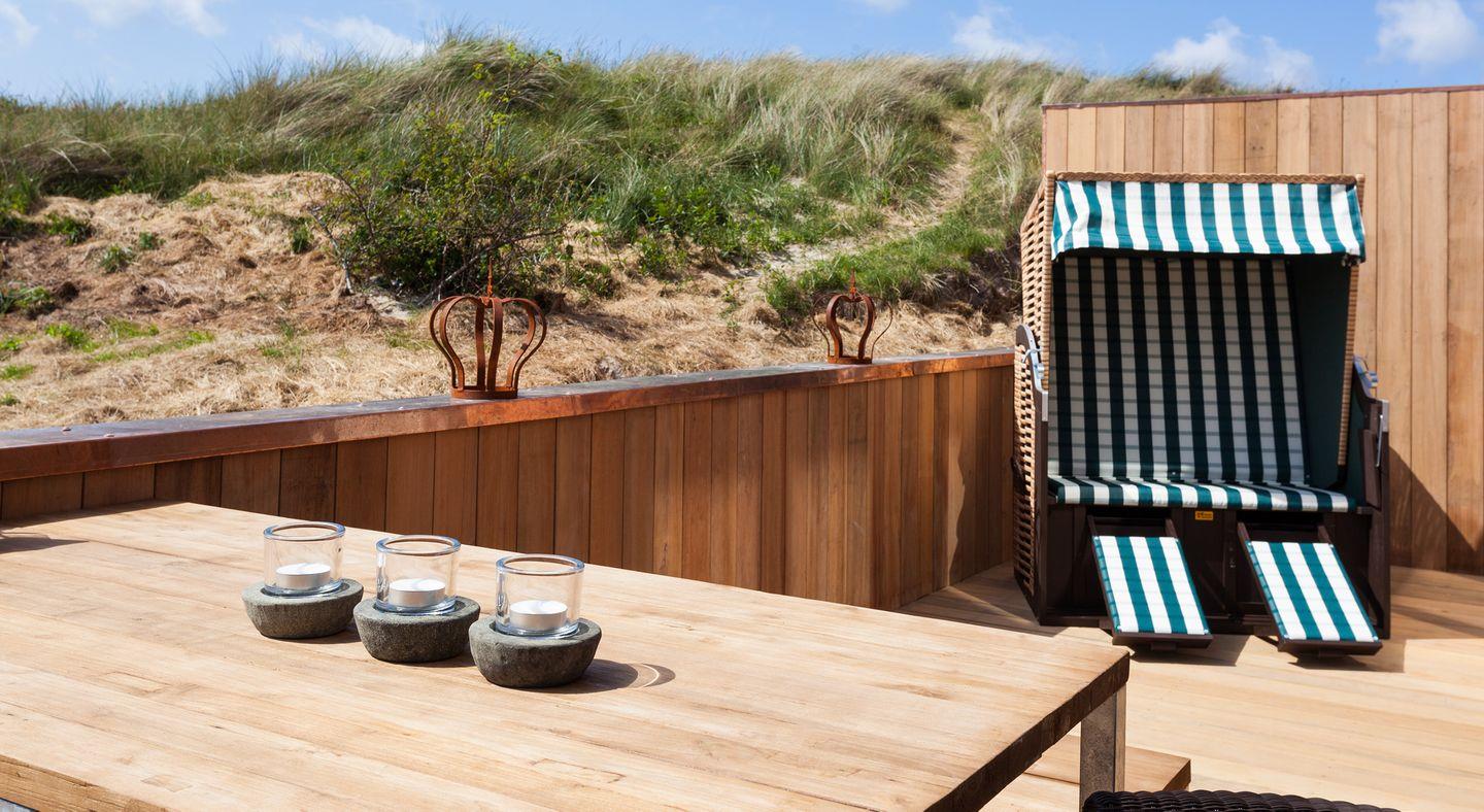 Traumhaftes Reetdachhaus (bis 8 Pers.) direkt am Strandaufgang, stilvoll-modern im friesischen Design. Drei Etagen mit höchstem Komfort: 4 Schlafzimmer (alle mit TV), 4 Bäder (Badewanne), Wohnküche mit Kamin und großem Esstisch, gemütlicher Wohnbereich mit Dünenblick, Balkon und Terrasse mit Strandkorb. WLAN, Handtücher, Bettwäsche, Bademäntel, Pflegeprodukte sowie Waschmaschine/Trockner inklusive. Eigene Terrasse mit Strandkorb. Grillplatz zur Gemeinschaftsnutzung. 4 Leihfahrräder vorhanden. Hunde willkommen (€50/Woche). Perfekte Lage nahe Zentrum & Loog – ideal für Ihren Traumurlaub!
