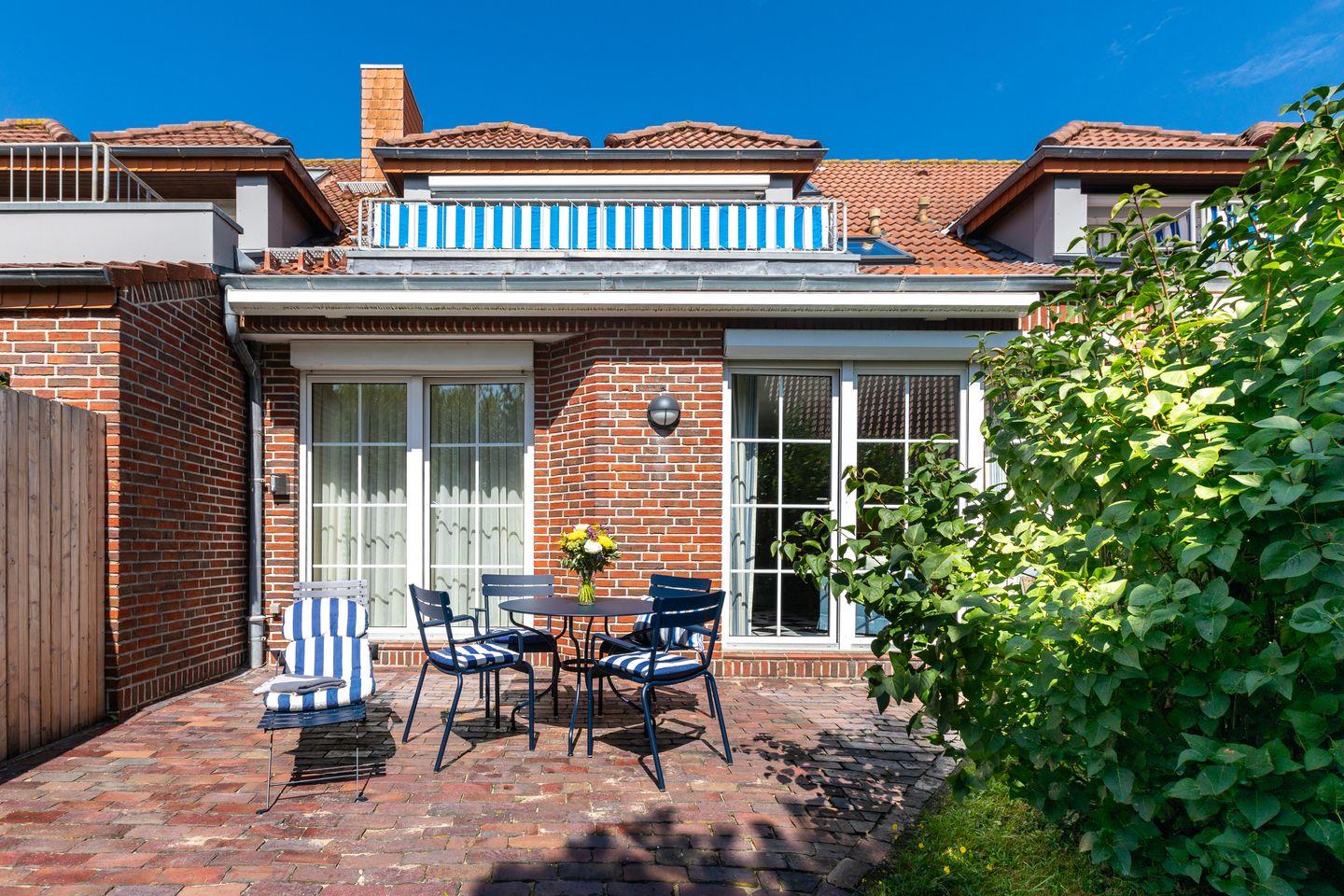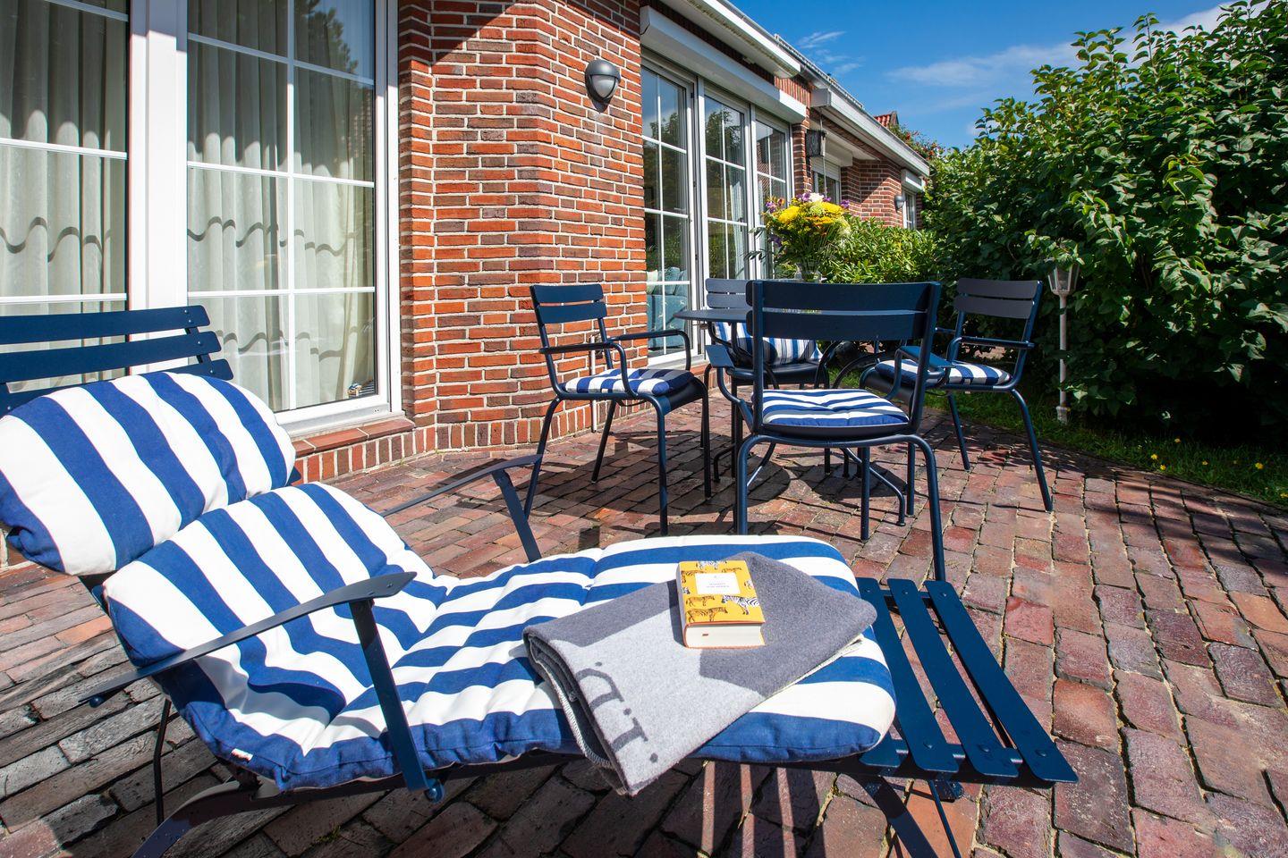 Der Zugang zum Garten ist direkt über die Terrasse des Wohnzimmers möglich. Hier können Sie nach einem ausgiebigen Spaziergang an den Juister Stränden entspannen und die frische Seeluft genießen.