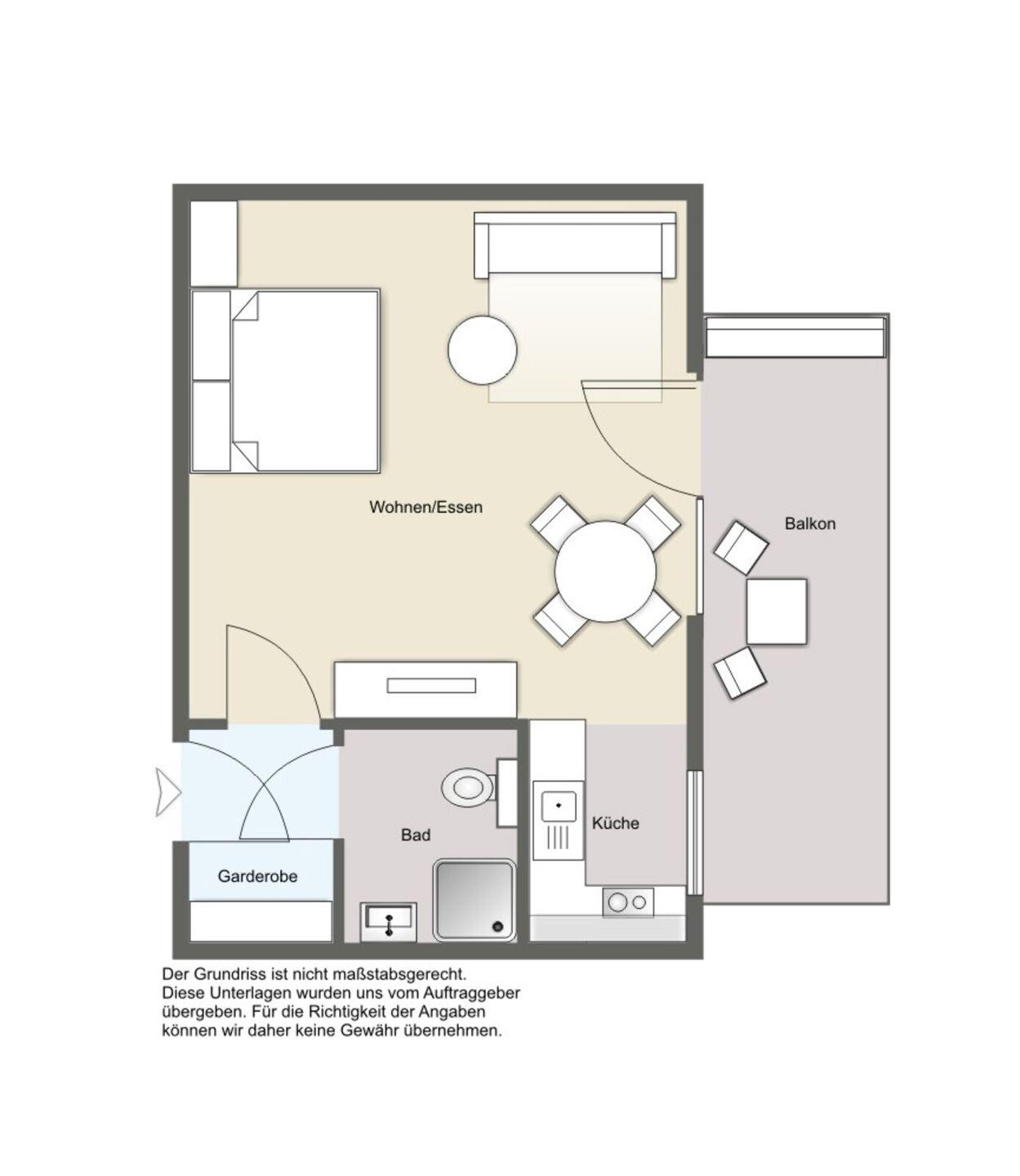 Schickes 1-Zimmer-Appartement mit stilvollem Doppelbett (180x200, neu, mit festen Matratzen), einem ausklappbaren & bequemen Schlafsofa, Blue-Ray- Anlage, TV 39", neuer & moderner Pantryküche mit Mikrowelle (mit Grill), Flur, das im Frühjahr grundsanierte Bad verfügt u. a. über Handtuchheizung, Spiegelschrank, Bluetooth Radio; Balkon zur Wilhelmstraße mit Strandkorb