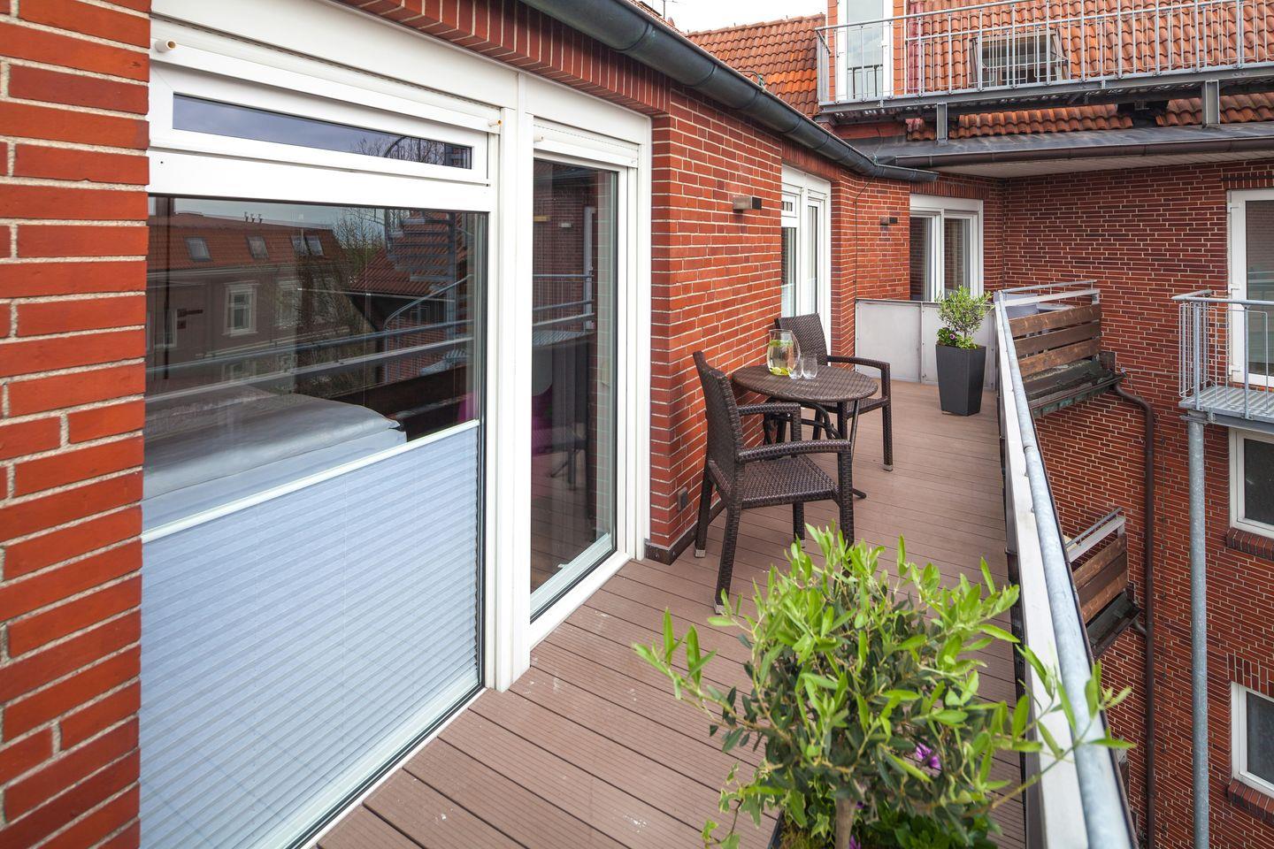 Modernes Appartement mit Boxspringbett, sonnigem Balkon und Blick zum Wattenmeer