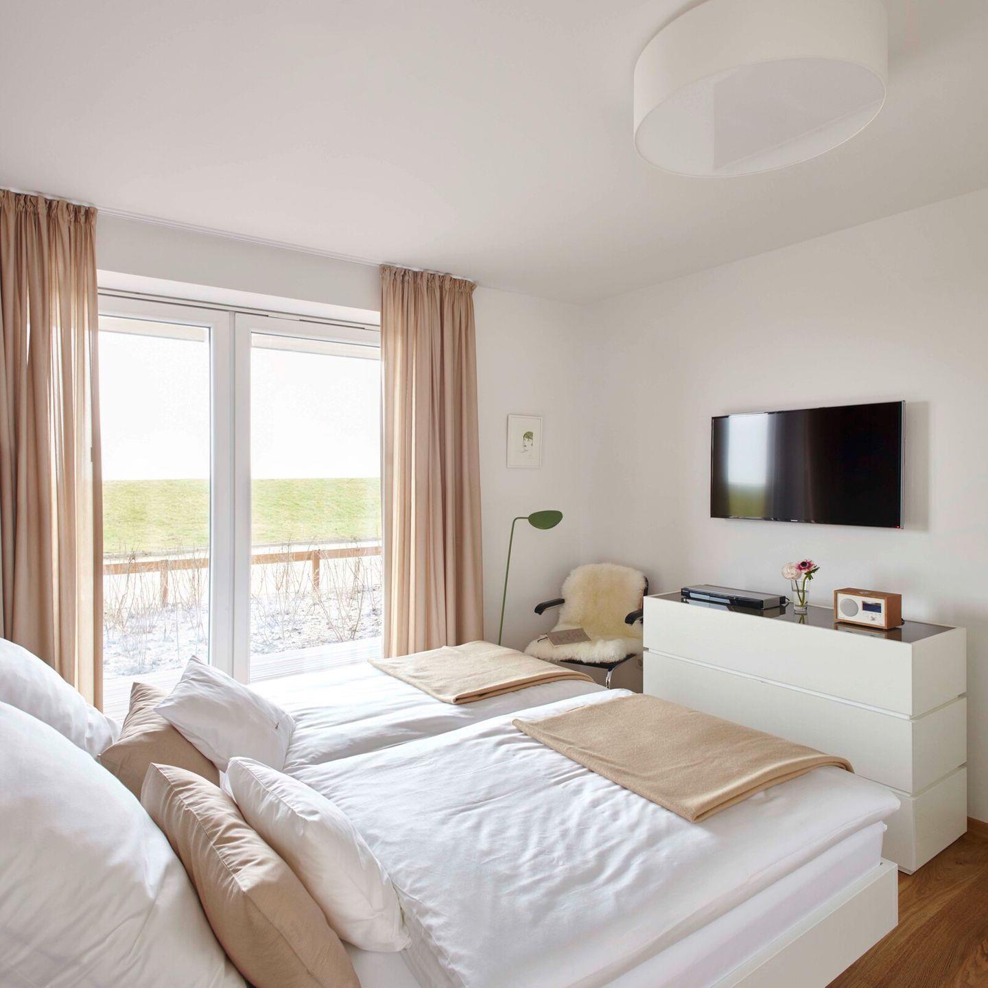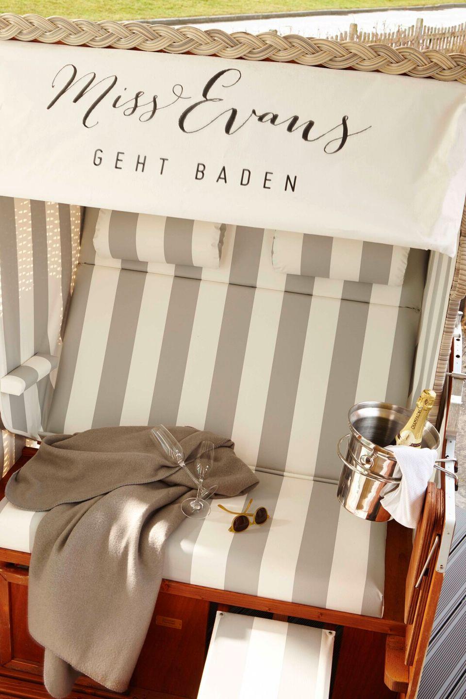 Das zweite Schlafzimmer verfügt über zwei Einzelbetten (können auch zusammengeschoben werden) und ebenso einen Fernseher. Im Tageslichtbad gehen Sie "nicht baden", sondern genießen die bodentiefe Dusche. Die traumhafte 32qm Süd-West-Terrasse mit eigenem Strandkorb, Tisch und 6 Stühlen lädt zum Sonnenbaden ein. Auch die Kleinen kommen in der Miss Evans groß raus: Reisebett, 2 Kinderhochstühle, Fläschchenwärmer, Kindernachtleuchte, Kinderhocker, Kinder-WC-Sitz und eine Wickelauflage sind vorhanden.