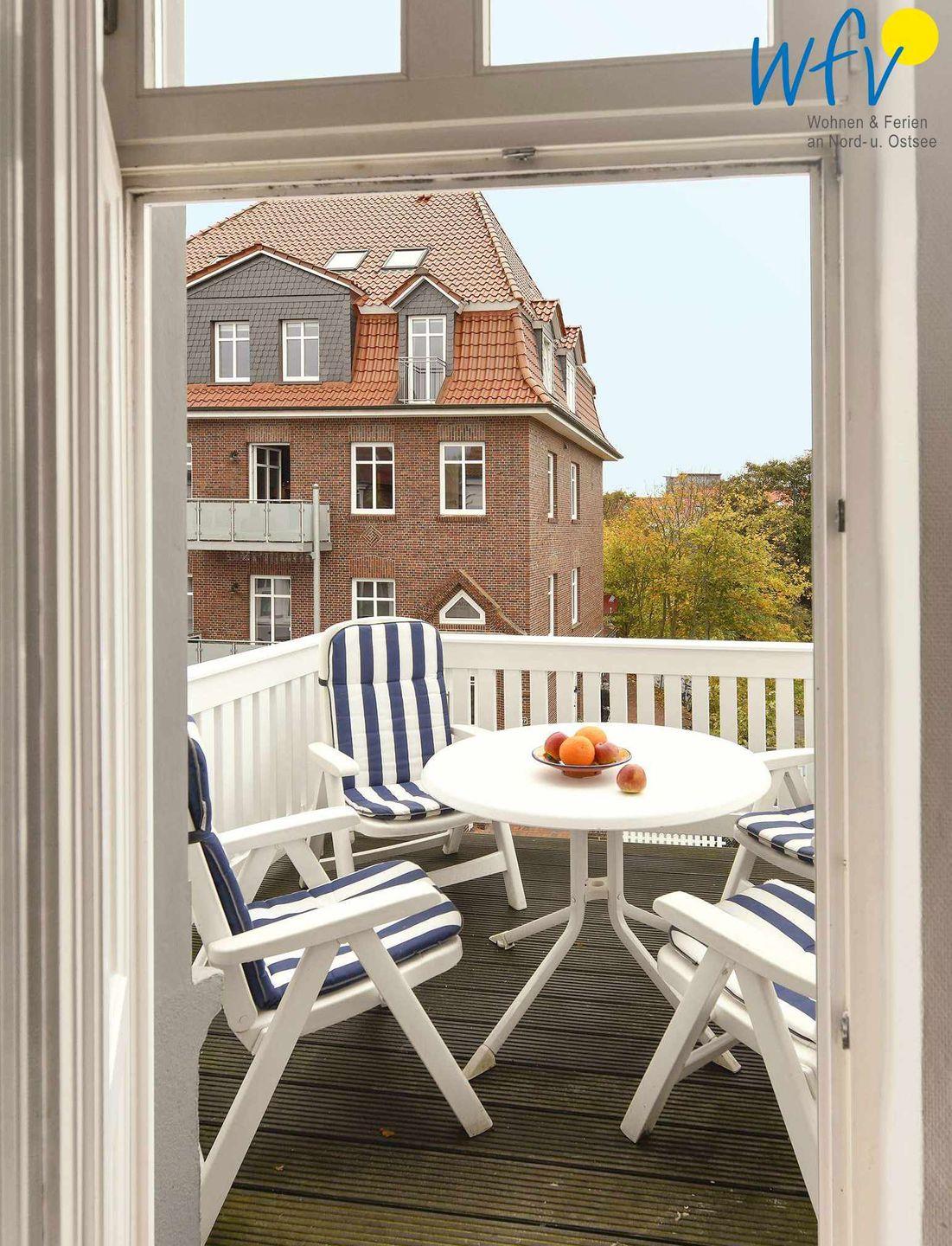 Wohltuende Entspannung an der frischen Nordseeluft garantiert Ihnen der schöne Nord-Balkon unserer Ferienwohnung auf Juist. Von hier aus genießen Sie einen wunderbaren Blick auf die Dünenlandschaft, auf Grünflächen und auf die Inselkirche!