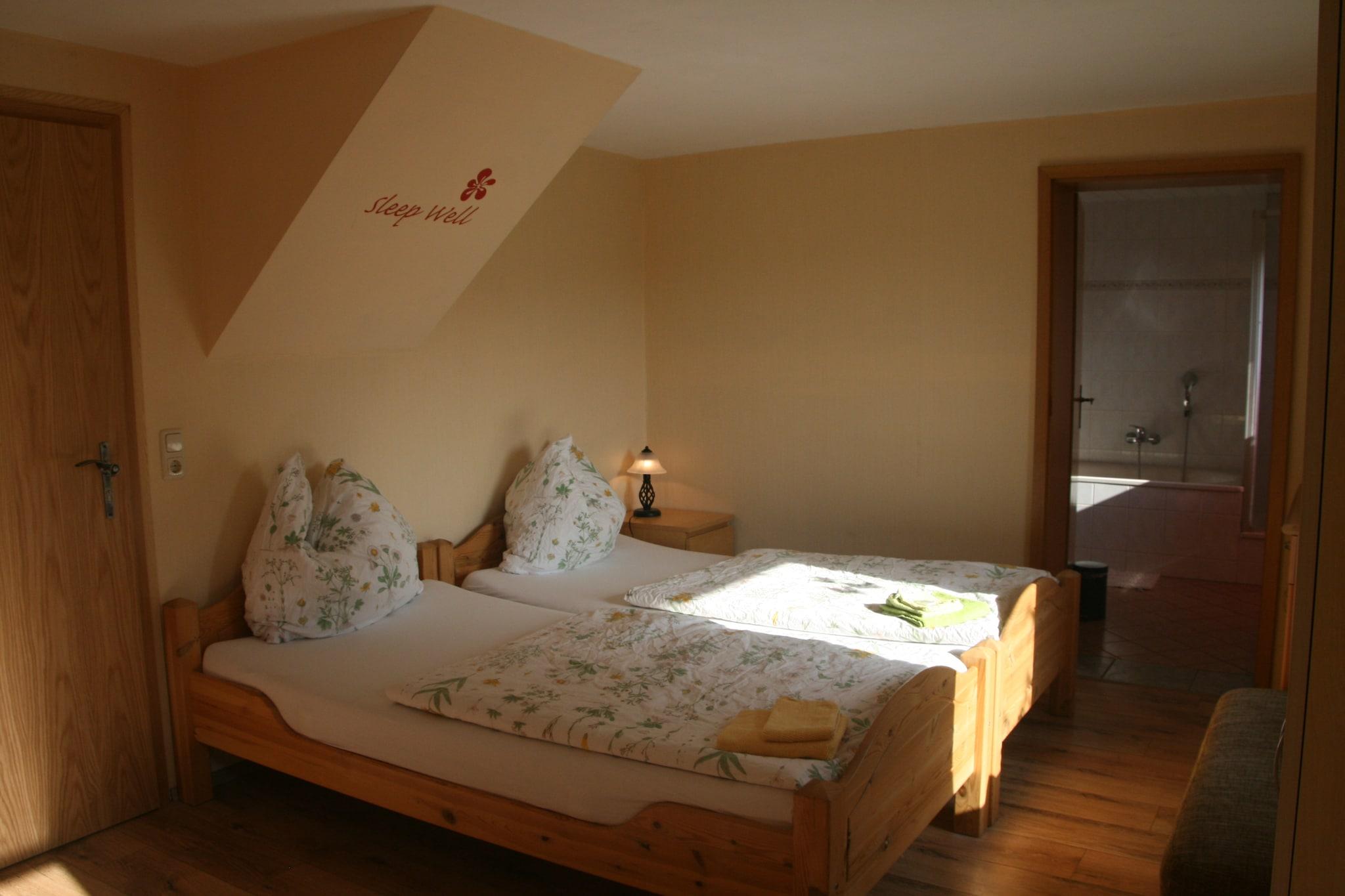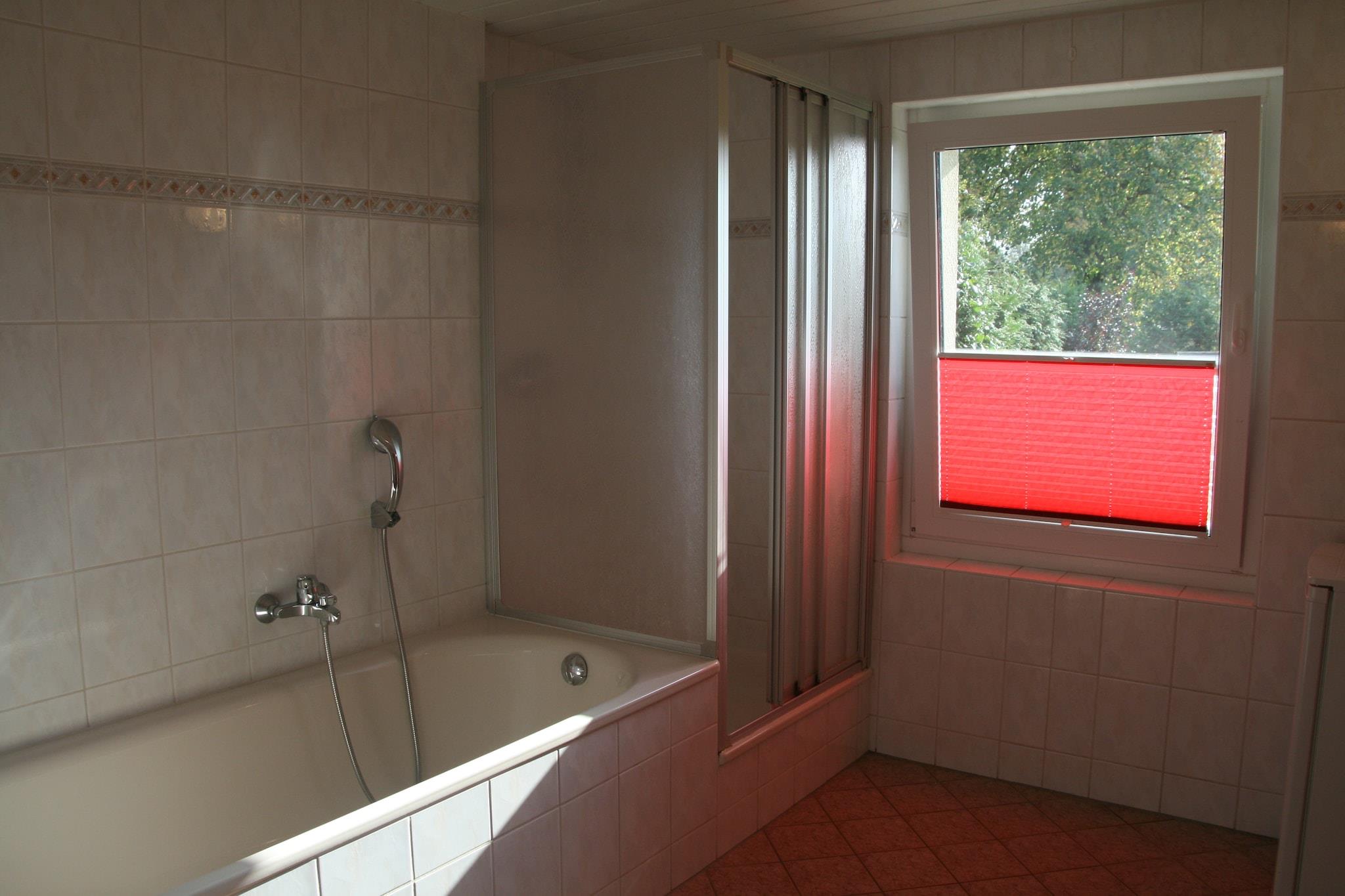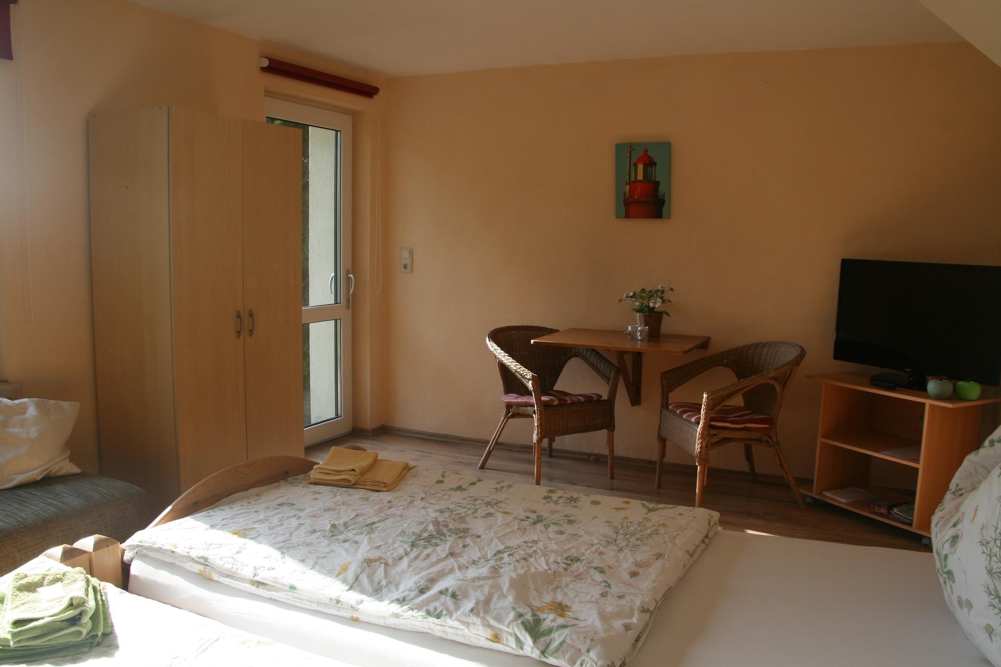Ground floor: (Living/bed room(double bed or 2 single beds, TV, dining table, radio, electric kettle, coffee machine, cot, electric hot plates), bathroom(bath tub, washbasin, toilet), heating, high chair) terrace(private), garden(shared with the owner ), bicycle storage(shared with other guests), garden furniture, BBQ, parking, play equipment(shared with other guests)