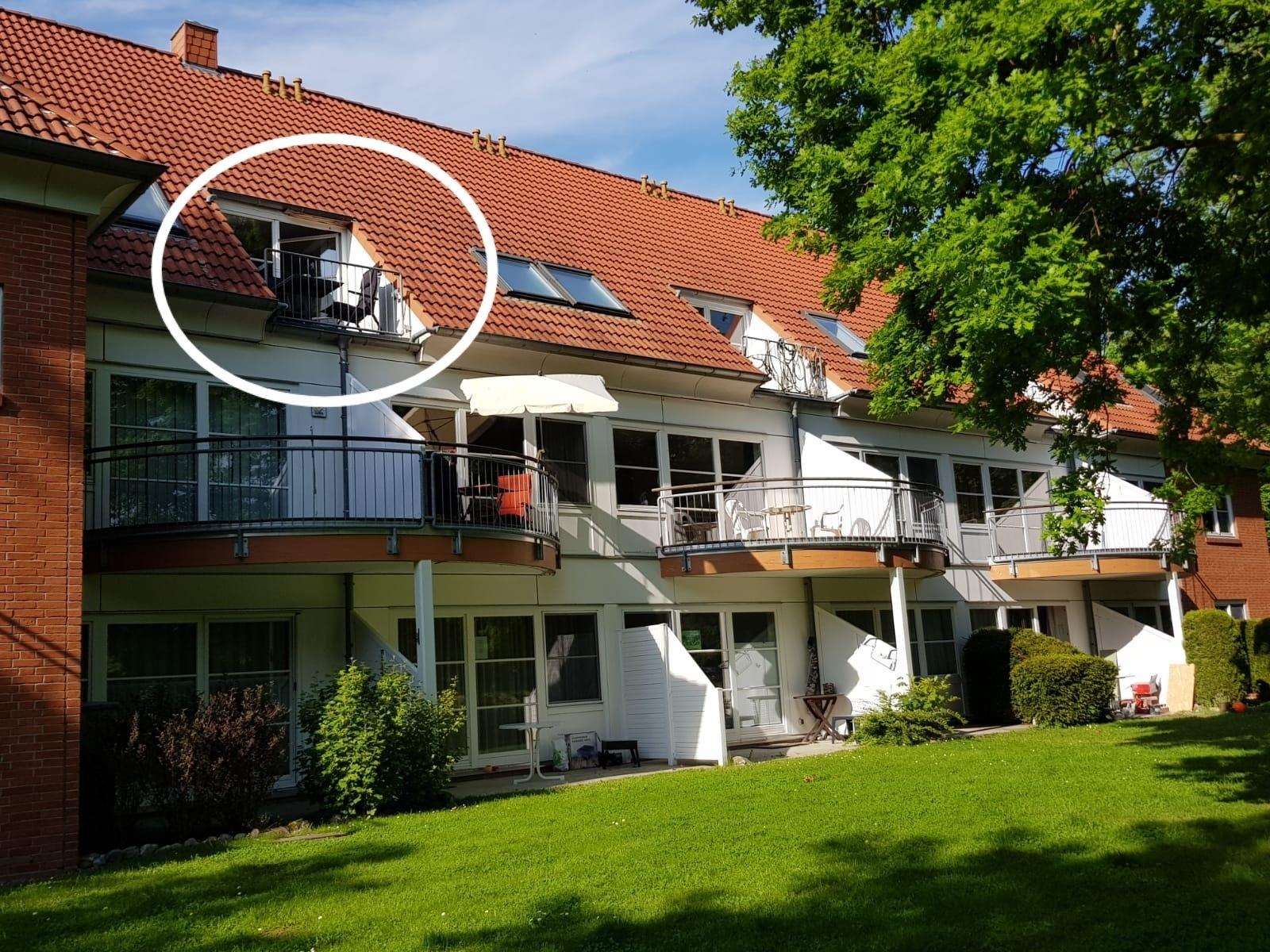 Die Ferienwohnung befindet sich im Dachgeschoss des Apartmenthauses. Von der Wohnung aus haben Sie im Schlafzimmer sogar einen kleinen Meerblick. Das Apartmenthaus liegt knapp 4 Kilometer westlich von Kühlungsborn. Das Grundstück ist umgeben von Bäumen und Feldern. Hier genießen Sie absolute Ruhe und sind doch in wenigen Minuten in Kühlungsborn West oder am Naturstrand (1 km). Ihr Auto parken Sie bequem auf dem Hof. Fahrräder können am Haus abgestellt werden.
