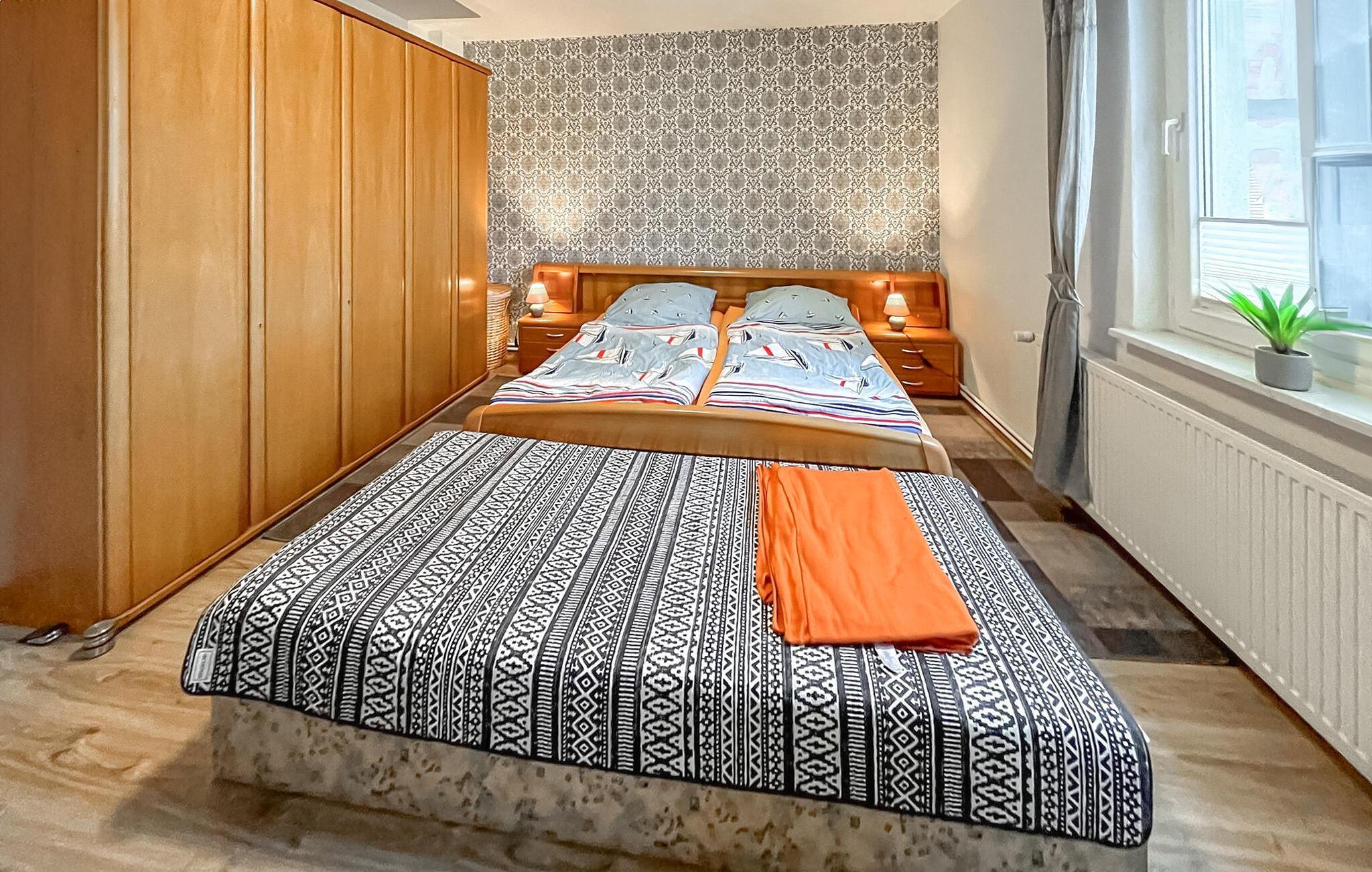 Schlafzimmer (nr. 1) - 1 Schlafmöglichkeit. (Einzelbett(en)). 2 Schlafmöglichkeiten. (Doppelbett(en)).