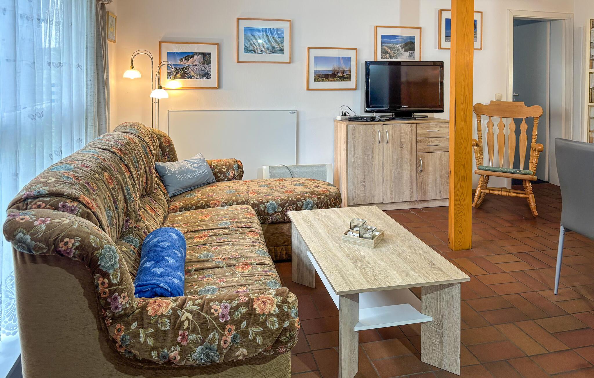 Das Nichtraucher-Ferienhaus für 5 Personen befindet sich gemeinsam mit sechs Ferienwohnungen auf einem 820 großen Grundstück in zentraler Ortslage. Der Ostseestrand mit Strandpromenade, Restaurants/Cafés und der Bahnhof der Usedomer Bäderbahn befinden sich im Umkreis von etwa 500 m.Es ist ausgestattet mit einem Wohnbereich (Polstermöbel mit Schlaffunktion als Aufbettungsmöglichkeit für die 5. Person, Flachbild-TV), einer offenen Küchenzeile (Esstisch, E-Herd mit Backofen, Kühlschrank mit Tiefkühlteil, Mikrowelle, div. Küchengeräte), 2 Schlafräumen (1 x Doppelbett, 1 x 2 Einzelbetten) sowie einem Bad mit DU/WC.Zur Verfügung stehen eine möblierte Terrasse, Grill, Unterstellmöglichkeit für mitgebrachte Fahrräder und PKW-Stellplatz. Für Kleinkinder kann ein Kinderbett und ein Hochstuhl bereitgestellt werden. Kostenfreies W-LAN ist ebenfalls vorhanden.