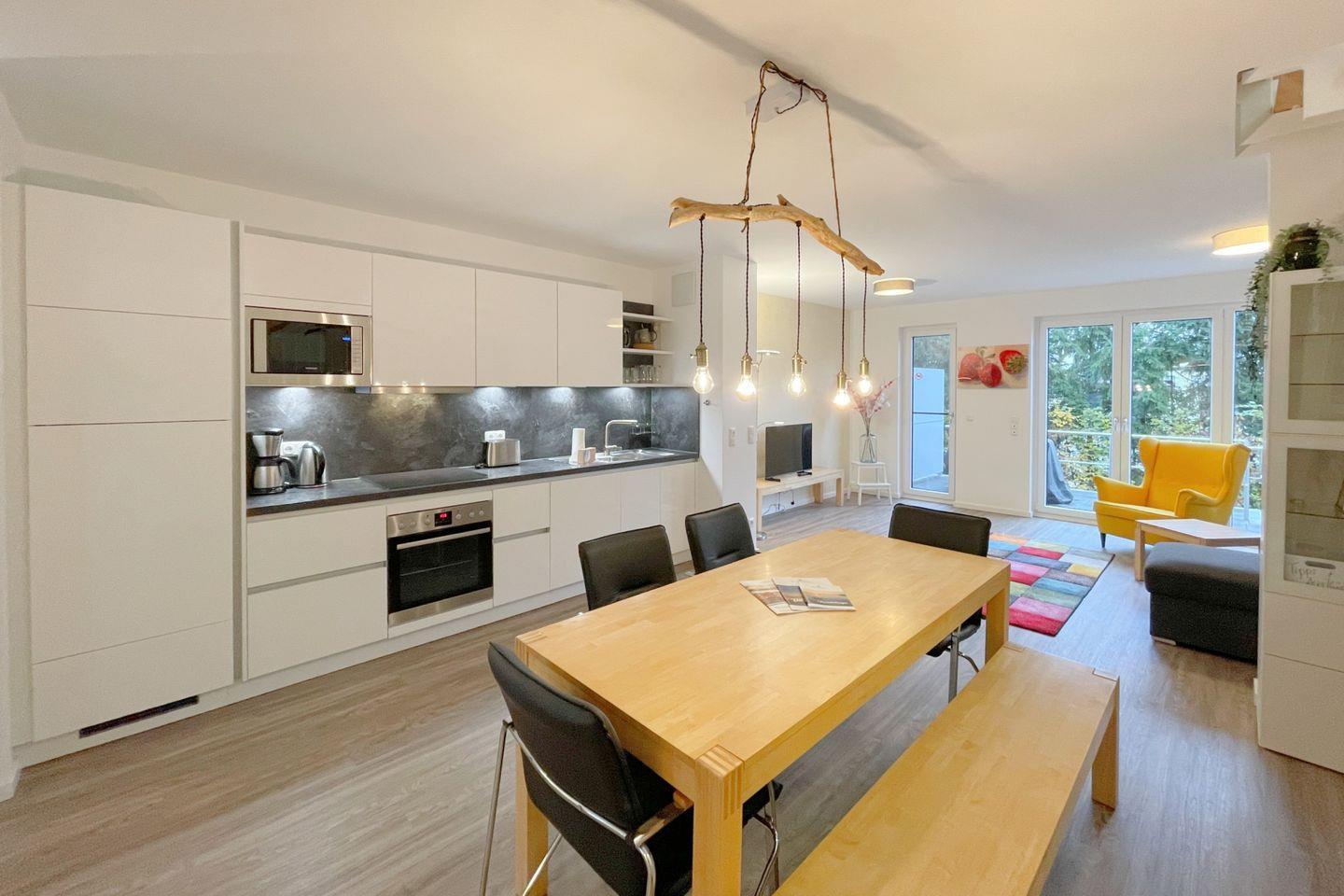 Ein weiteres Highlight ist die große Terrasse, die zum Verweilen einlädt und Sie die Natur in vollen Zügen genießen lässt. Hier können Sie bei einer Tasse Kaffee die frische Luft inhalieren oder abends den Tag bei einem Glas Wein ausklingen lassen. Für Familien wird das Bernsteinquartier durch die kinderfreundliche Ausstattung zu einem idealen Ziel – auch Ihre Kleinsten werden sich hier wohlfühlen.