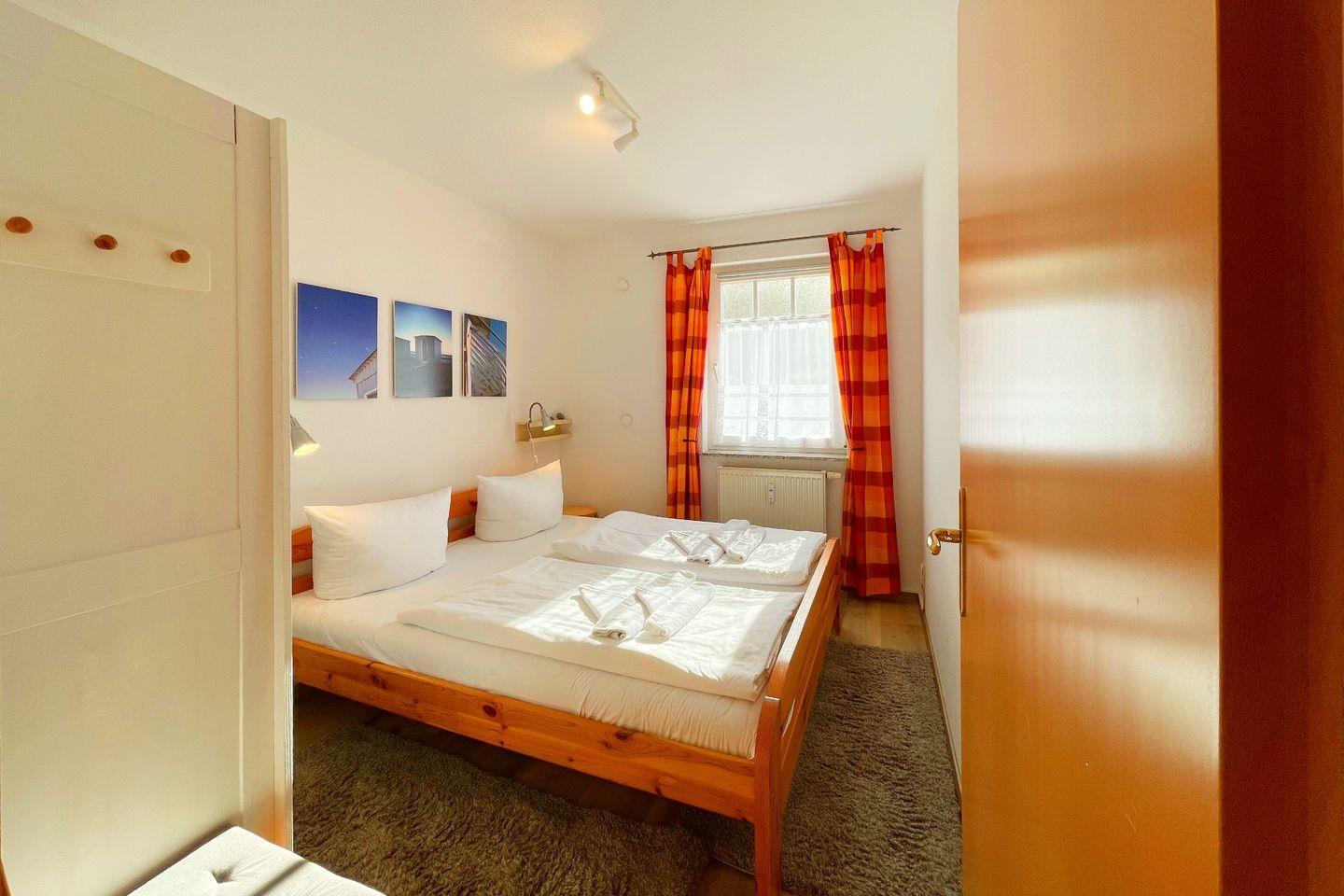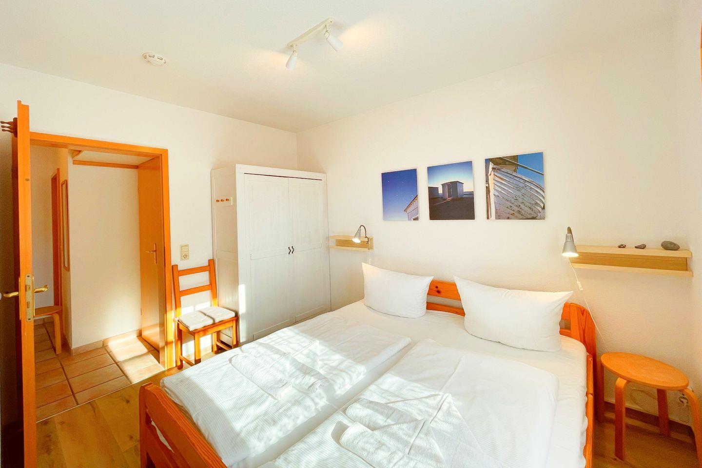 Das 3-Zimmer-Apartment im Erdgeschoss begrüßt Sie mit einer Sonnenterrasse in Südlage.Sehr ruhig und nur 3 Gehminuten von der Ostsee entfernt, gelegen. Das Wohnzimmer mit offener Küche, Essecke und bequemer Couch, bildet das Herzstück dieses Apartments. Ein Schlafzimmer ist mit einem Doppelbett, das andere ist mit einem Doppelstockbett und einem Einzelbett ausgestattet. In dem modernen Duschbad befindet sich neben dem WC ein Waschtisch mit Spiegel.