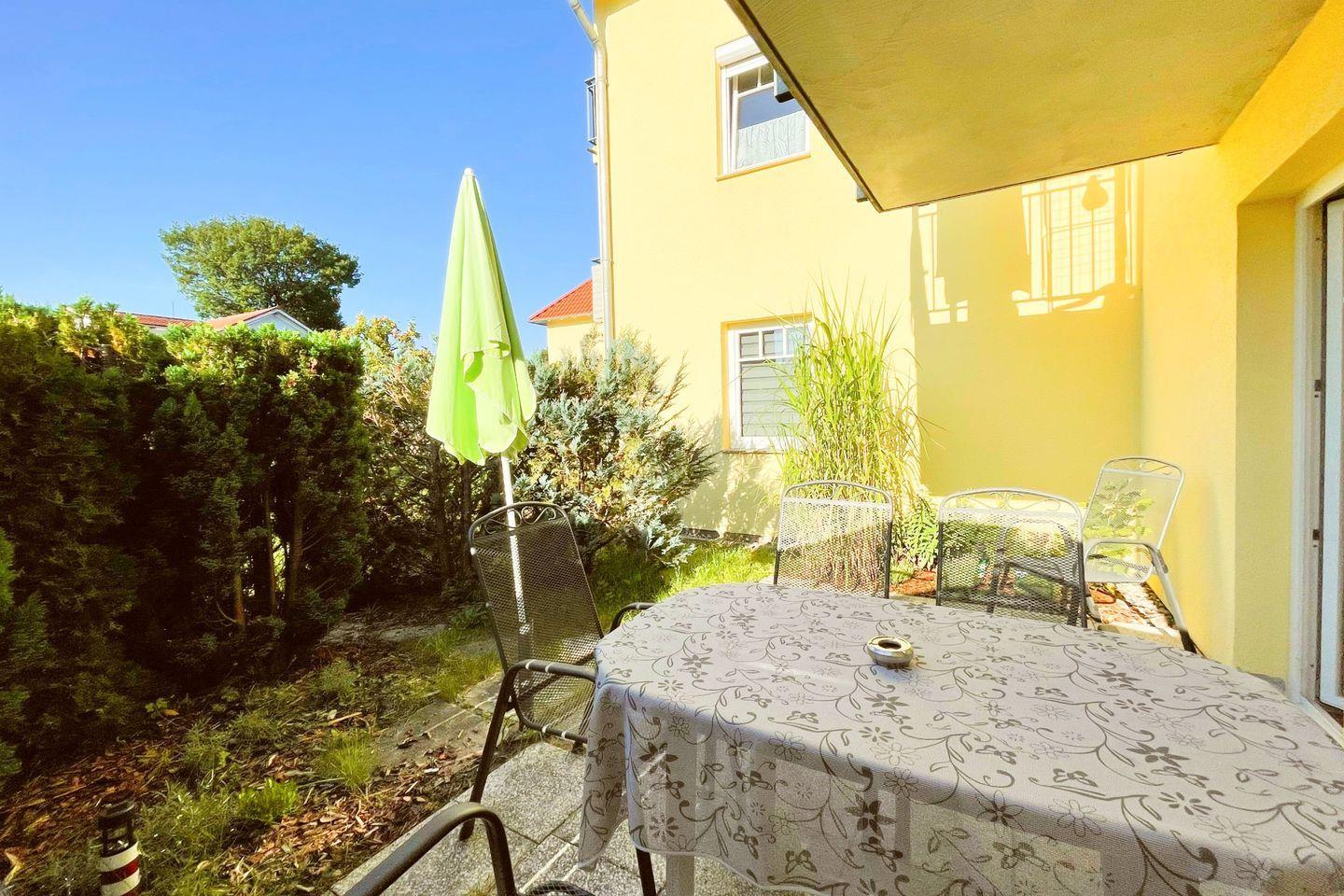 Das 3-Zimmer-Apartment im Erdgeschoss begrüßt Sie mit einer Sonnenterrasse in Südlage. Sehr ruhig und nur wenige Gehminuten von der Ostsee entfernt. Das Wohnzimmer mit offener Küche und Frühstücks Tresen für 2 Personen, Essbereich für 4 Personen und einer bequemen Couchecke, bildet das Herzstück dieses Apartments. Ein Schlafzimmer ist mit einem Doppelbett und Kleiderschrank, das andere ist mit einem Doppelstockbett, einem Einzelbett und Kleiderschrank ausgestattet. In dem modernen Duschbad befindet sich neben dem WC ein Waschbecken mit Spiegel.