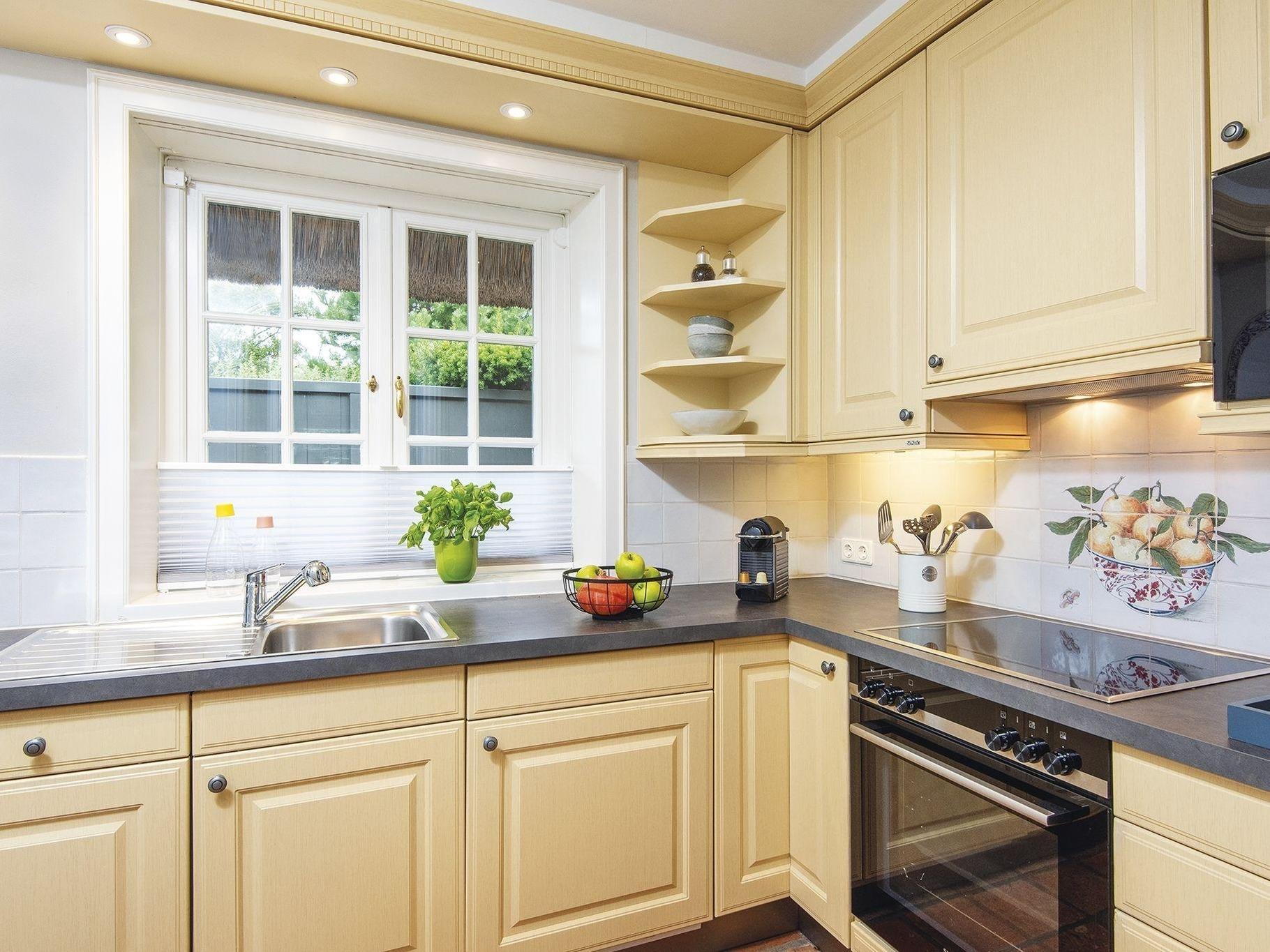 Klassisches Antlitz von draußen und moderner Chic innen - das stilvoll gemütliche Hausteil unter Reet für Fünf ist zentrumsnah und doch ruhig gelegen. Neben der separaten Küche erfreut im Erdgeschoss der in eleganten Naturtönen mit kleinen Farbakzenten gehaltene Wohnbereich mit Kamin und bequemen Polstermöbeln, sowie einem schönen Esstisch für gemütliche Runden. Von hier haben Sie auch Zugang zum Garten mit Terrasse und Strandkorb. Ein Doppelschlafzimmer mit großen Einbauschränken und ein Wannenbad erwartet Sie im hellen Untergeschoss. Im Obergeschoss lässt das große Doppelschlafzimmer mit Gartenblick nebst modernem Duschbad und einem schönen Einzelschlafzimmer keine Wünsche offen. Das Quartier ist mit Terracotta- und Holzfußböden ausgestattet.