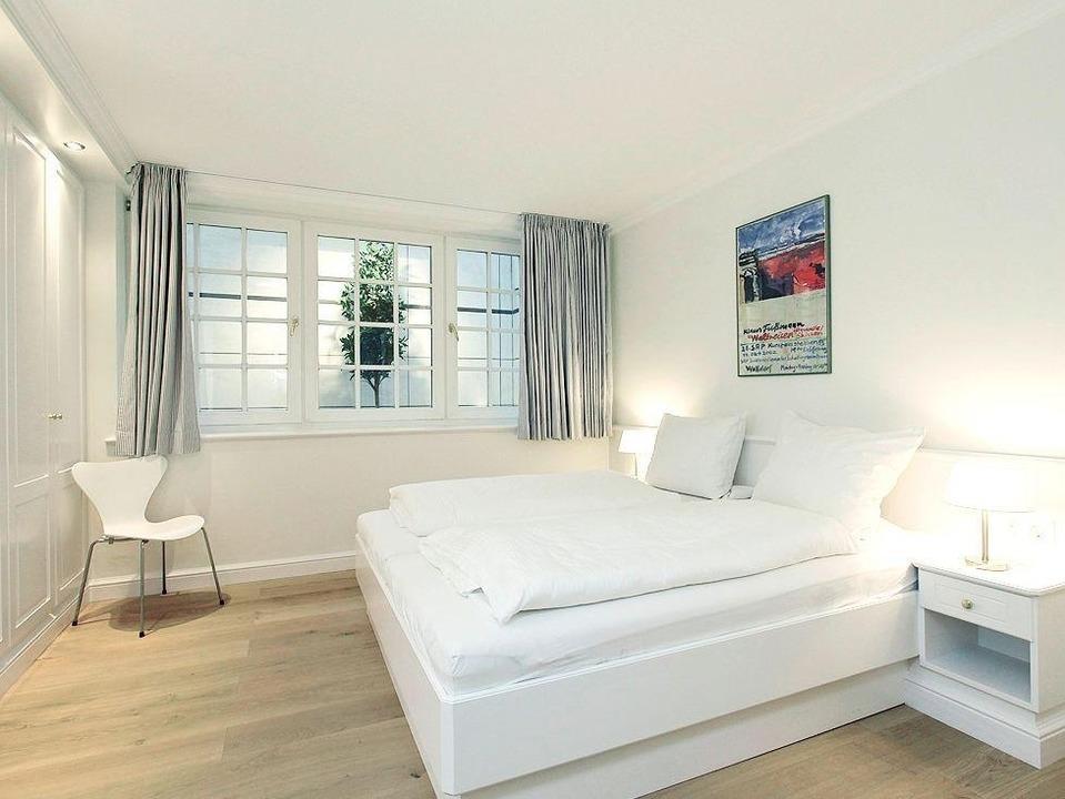 Dieses Endhausteil ist ein Juwel mit einem großzügigen Garten. Eine schöne Terrasse mit Sonne bis zum späten Nachmittag und zwei sehr geräumige Gartenecken mit großem Strandkorb zeichnen dieses Quartier besonders aus. Der weite Blick über das Wattenmeer und die Wiesen laden zum Träumen ein. Der großzügige Wohnbereich mit langem Esstisch, Kamin und der separaten Küche überzeugen durch edle Materialien und das elegante Landhausflair. Höhepunkt des Obergeschosses ist das Erker-Doppelzimmer mit Panoramablick direkt auf den Kampener Leuchtturm, dazu ein feines Wannenbad. Außerdem auf dieser Etage ein Schlafzimmer mit zwei Einzelbetten mit Blick über die Dächer von Kampen und ein Duschbad. Das Untergeschoss bietet je ein Doppel- und ein Einzelschlafzimmer und ein Gäste-WC. Besonders punktet es jedoch durch sein behagliches Wellnessbad, ausgestattet mit Sauna und XXL-Sprudelwanne.