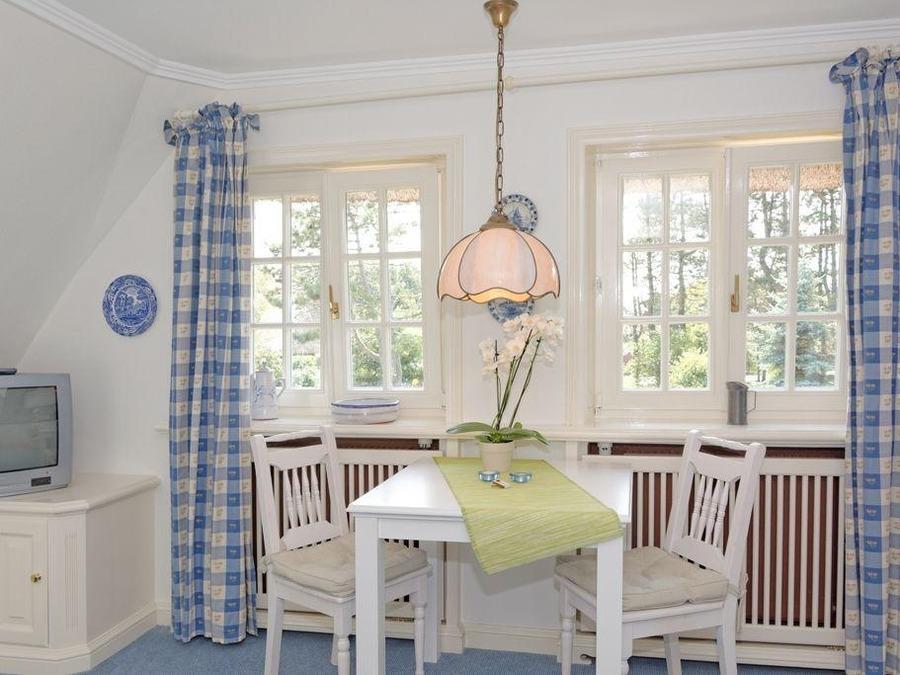 Unweit der Dünen, im ersten Stock eines klassischen Reetdachhauses, bietet dieses Appartement Strand- und Wattläufern ein passendes Refugium. Der Farbakzent der zweckmäßig-gemütlichen Ausstattung im Wohnbereich ist Friesischblau. Die kleine offene Küch...