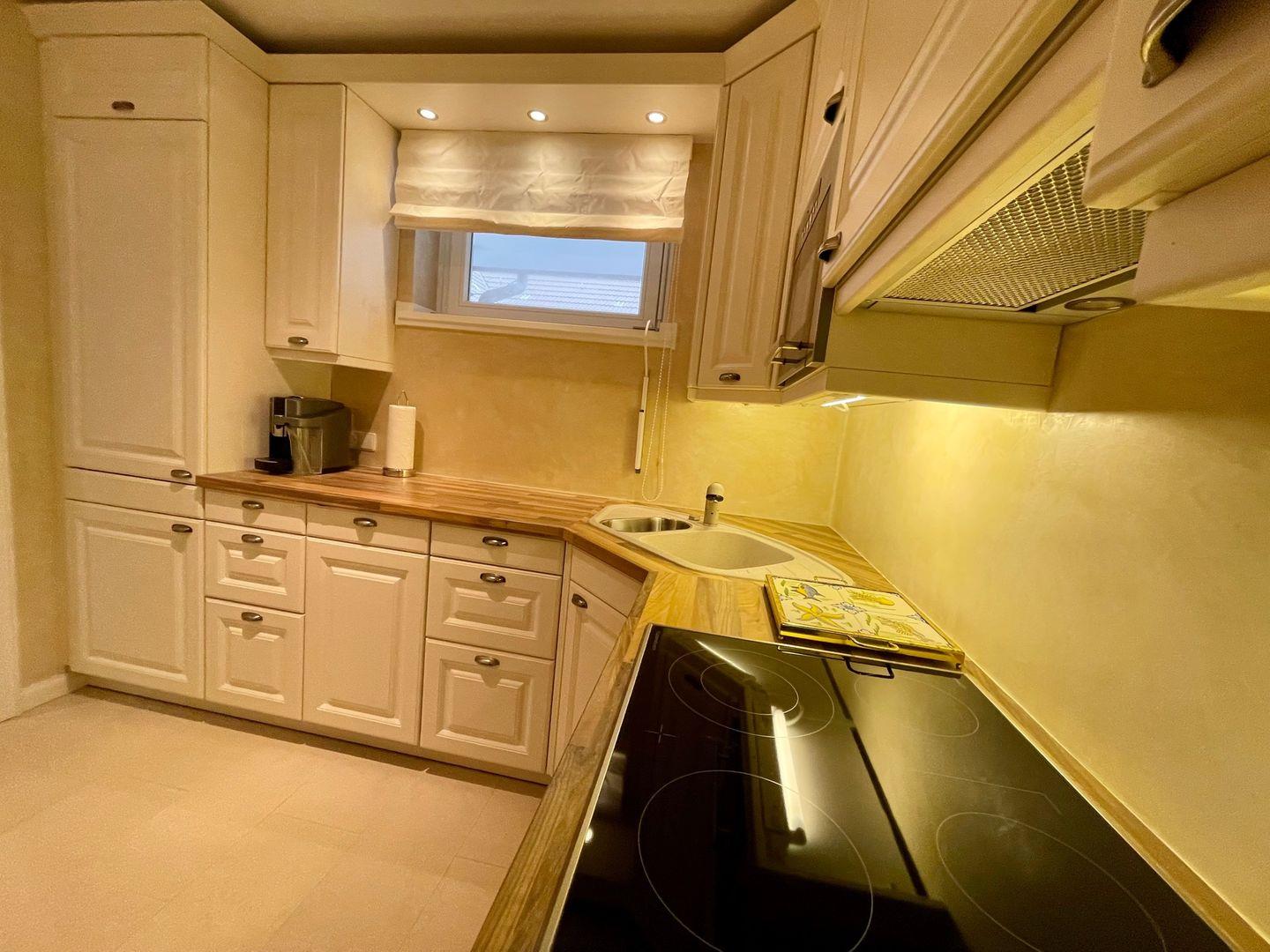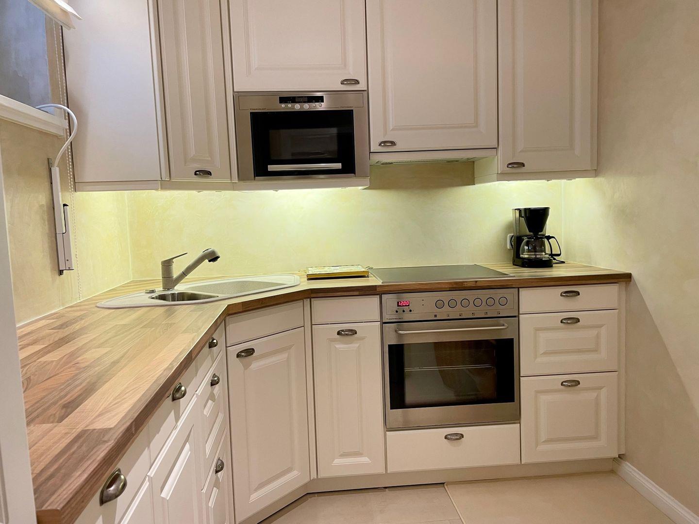 Für entspannte Abende vor dem Fernseher, erwartet Sie im Wohnzimmer eine gemütliche Couch mit großem Flachbildfernseher. Hier lädt auch ein Tagesbett zur Entspannung ein. Vom Esstisch aus, haben Sie einen tollen Blick auf das Meer und die berühmte Sturmhaube. Die modern eingerichtete Küche verfügt über einen Kühl - und Gefrierschrank, einen Herd mit Backofen, einer Geschirrspülmaschine, sowie einer ausgewählten Variation an Geschirr, Gläsern und Küchenutensilien. Eine Waschmaschine mit Trocknerfunktion befinden sich ebenfalls in der Küche. Kaffeeliebhaber kommen Dank der vorhandenen Tchibo- und Filtermaschine voll auf Ihre Kosten. Das helle Badezimmer verfügt über einen großen Spiegel, der sich direkt über dem modernen Waschbecken befindet, einem WC und einer Dusche.