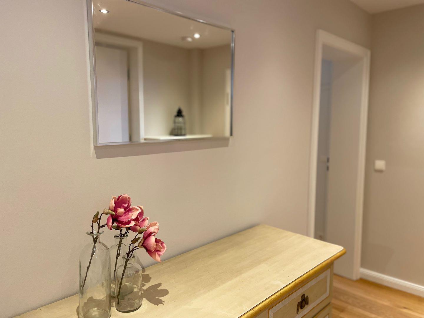 Die stilvoll und hell eingerichtete Wohnung, erreichen Sie über das offene Treppenhaus im Innenhof.
