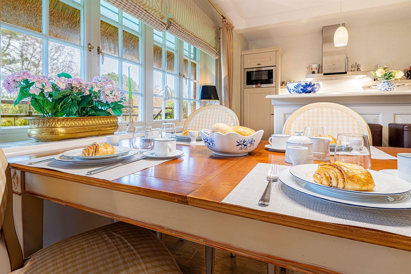 Das top ausgestattete Reetdach-Endhausteil mit einem großen privaten Grundstück und Blick auf die Heide liegt direkt in Kampen, ein wunderbarer Ort, um die schönste Zeit des Jahres zu verbringen.