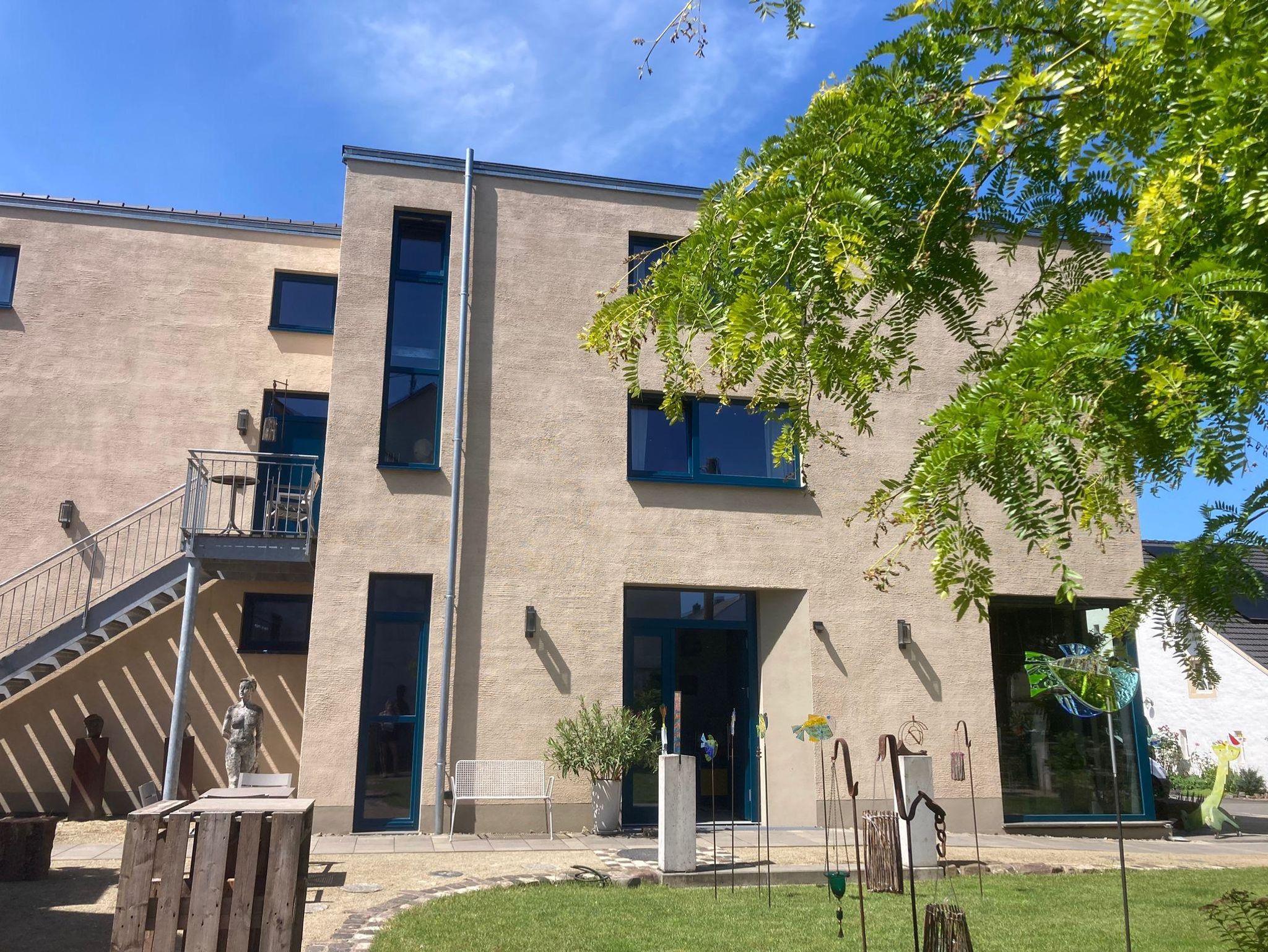Zu jeder Wohnung gehört ein Parkplatz, direkt vor dem Haus. Der große, ruhig gelegene Garten, mit vielen gemütlichen Sitzmöglichkeiten und dem geschützt gelegenen Innenhof lädt ein zum Verweilen und Entspannen ein. Der Bahnhof ist fußläufig in 5 Gehminuten zu erreichen. Auf Wunsch bieten wir verschiedene künstlerische Kurse in den Bereichen Zeichnen, Glas, Holz sowie Stein auf Anfrage (ab 5 Teilnehmern) an.