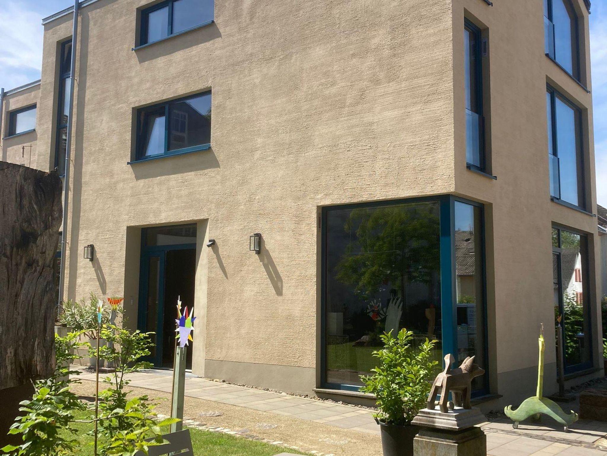 Das Fewo- und Atelierhaus liegt im ruhigen, idyllischen Herzen von Kanzem, direkt am Saarradwanderweg. Es wurde 2020/22 erbaut, verfügt über 3 Geschosse. Im EG befinden sich Atelier- und Ausstellungs/Seminarräume. In den beiden darüber befindlichen Geschossen (1.OG und DG) gibt es jeweils ein kleines und ein großes Appartement.
