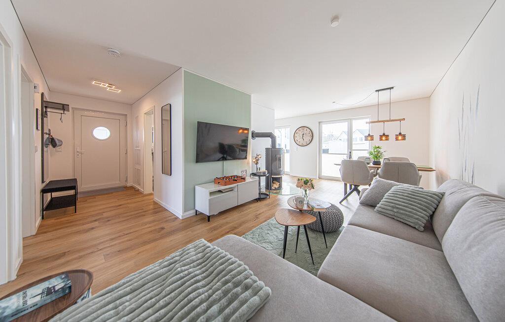 Die Ferienwohnung Kap Horn ist hochwertig eingerichtet und verfügt über einen großzügigen Wohn- und Essbereich, der zum gemütlichen Beisammensein einlädt. Angrenzend findet ihr eine offene und voll ausgestattete Küche, in der das Kochen zum gemeinsamen Erlebnis wird! Genießen Sie Ihre Mahlzeiten, entweder am großen Esstisch oder auf der überdachten Südwestterrasse. Ein Grill steht euch dabei für eure kulinarische Abwechslung zur Verfügung.