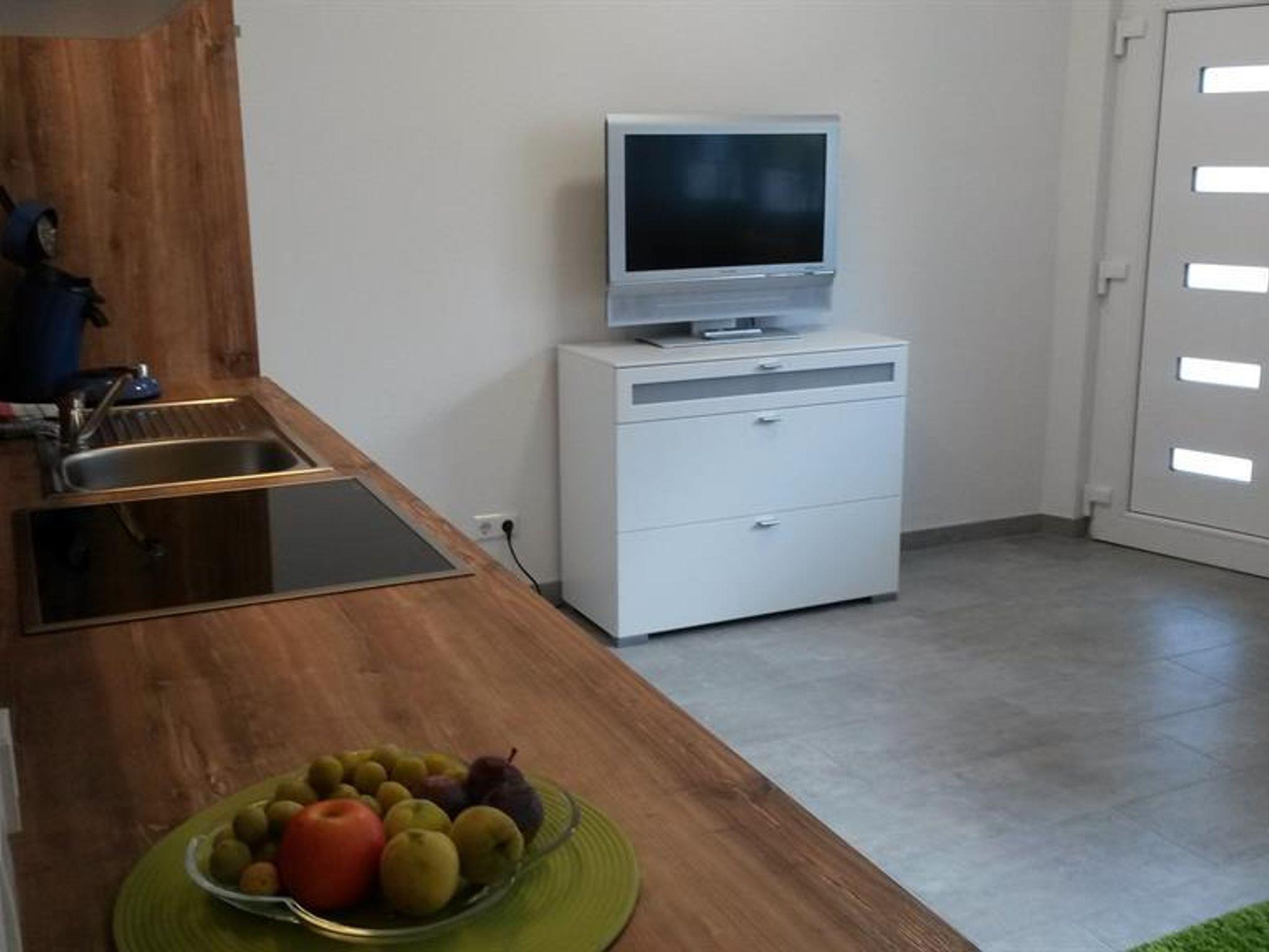 Die Küche ist mit einem Geschirrspüler, einem Backofen, einem Toaster, eine Kaffeemaschine und einem Wasserkocher ausgestattet. Ein Flachbild-Sat-TV ist ebenfalls vorhanden. Im eigenen Bad befindet sich eine Dusche.