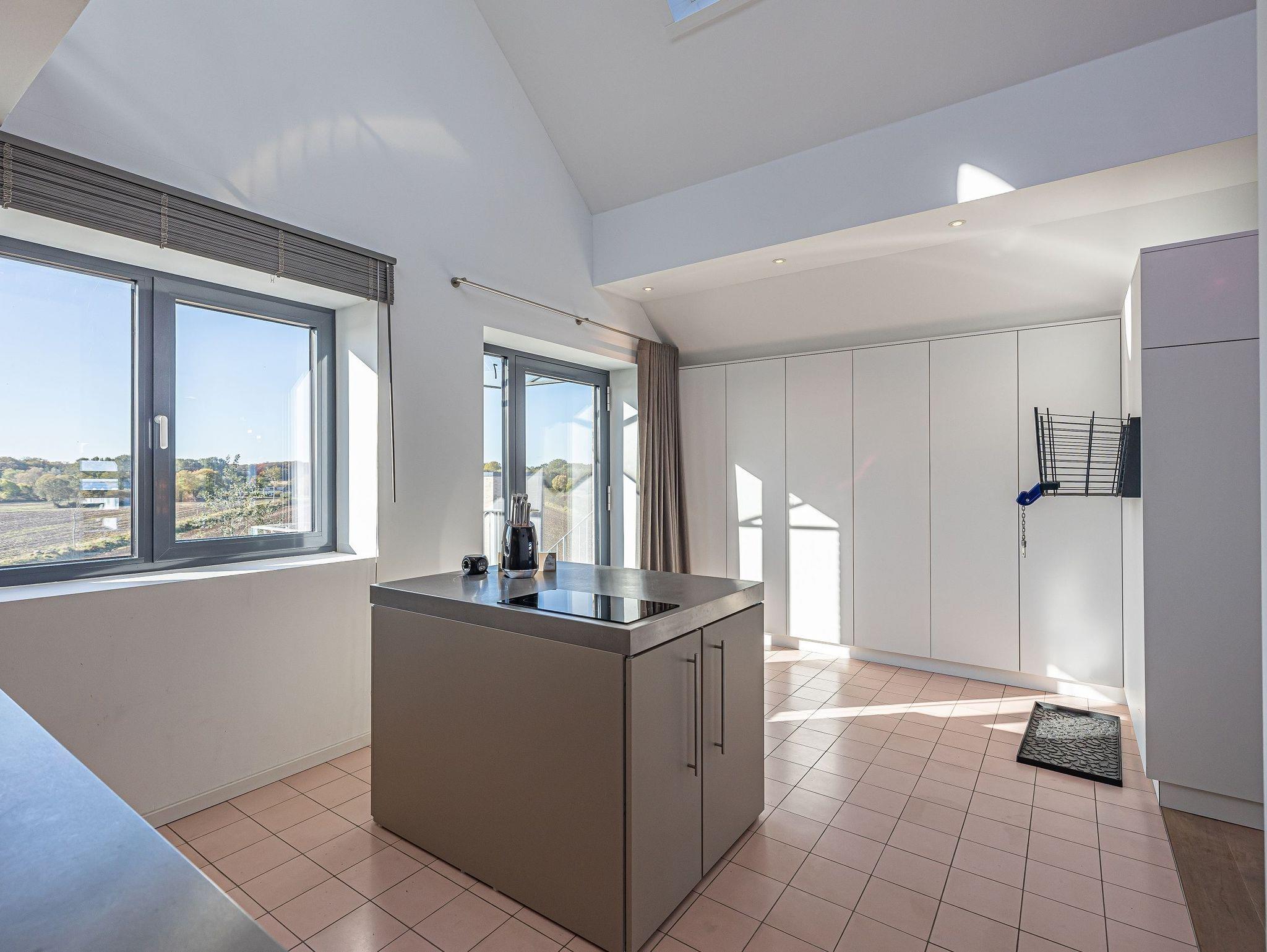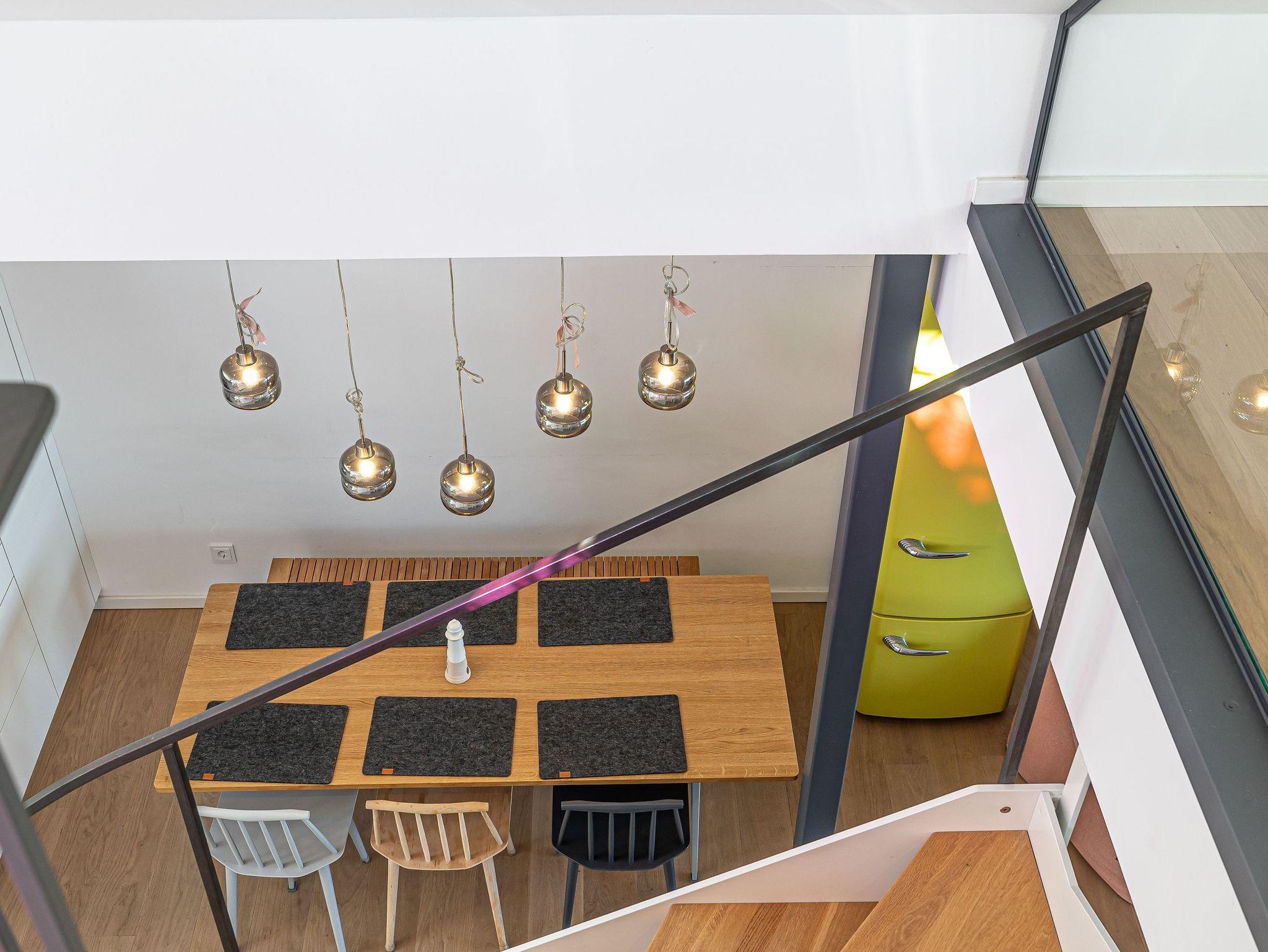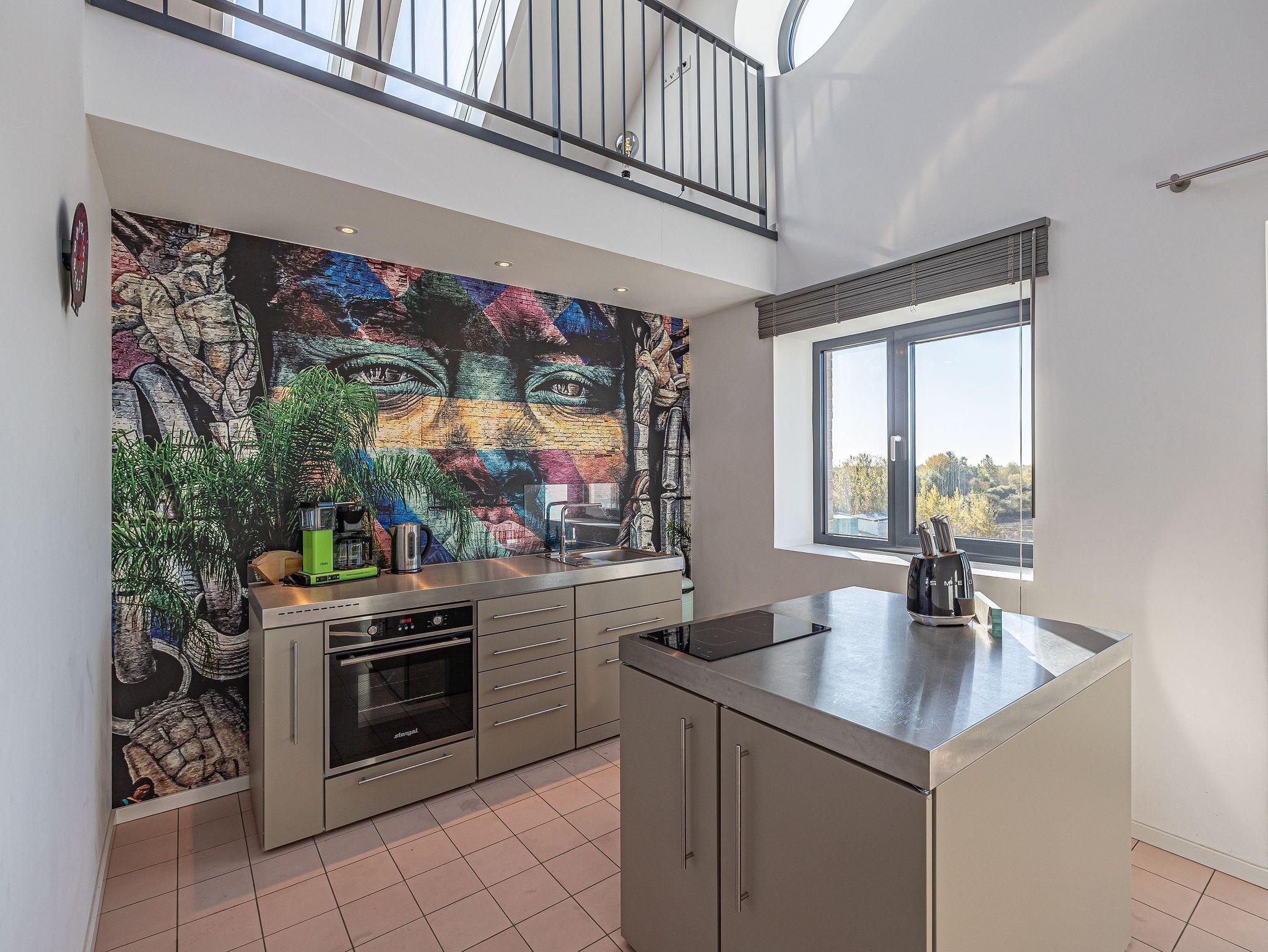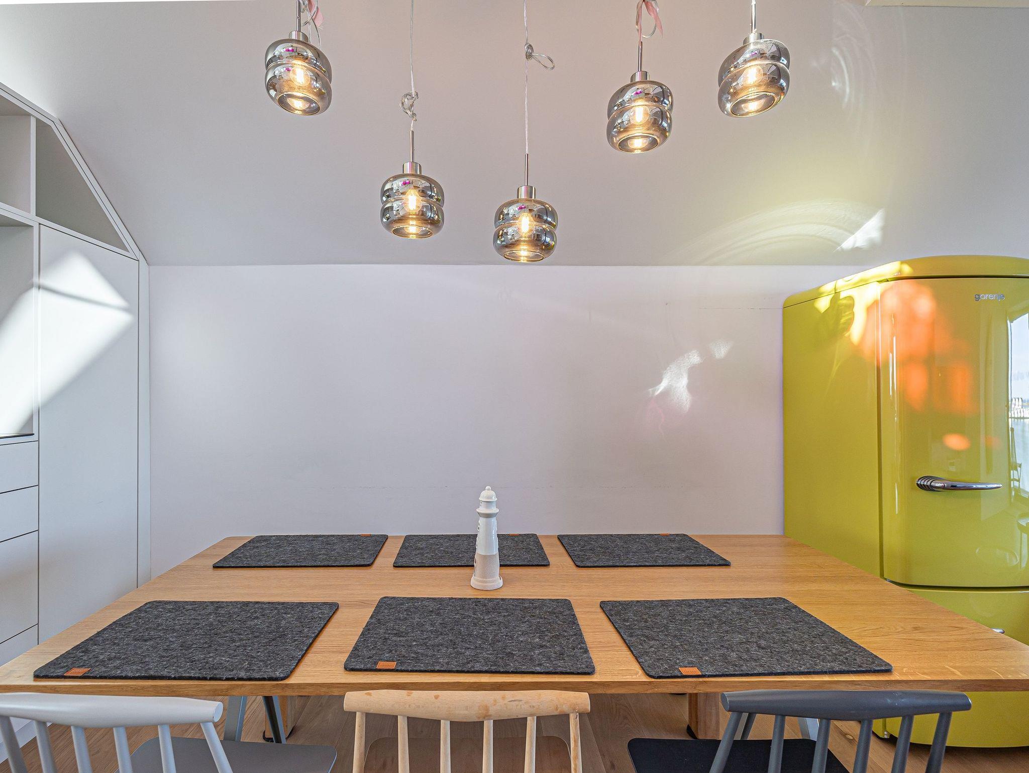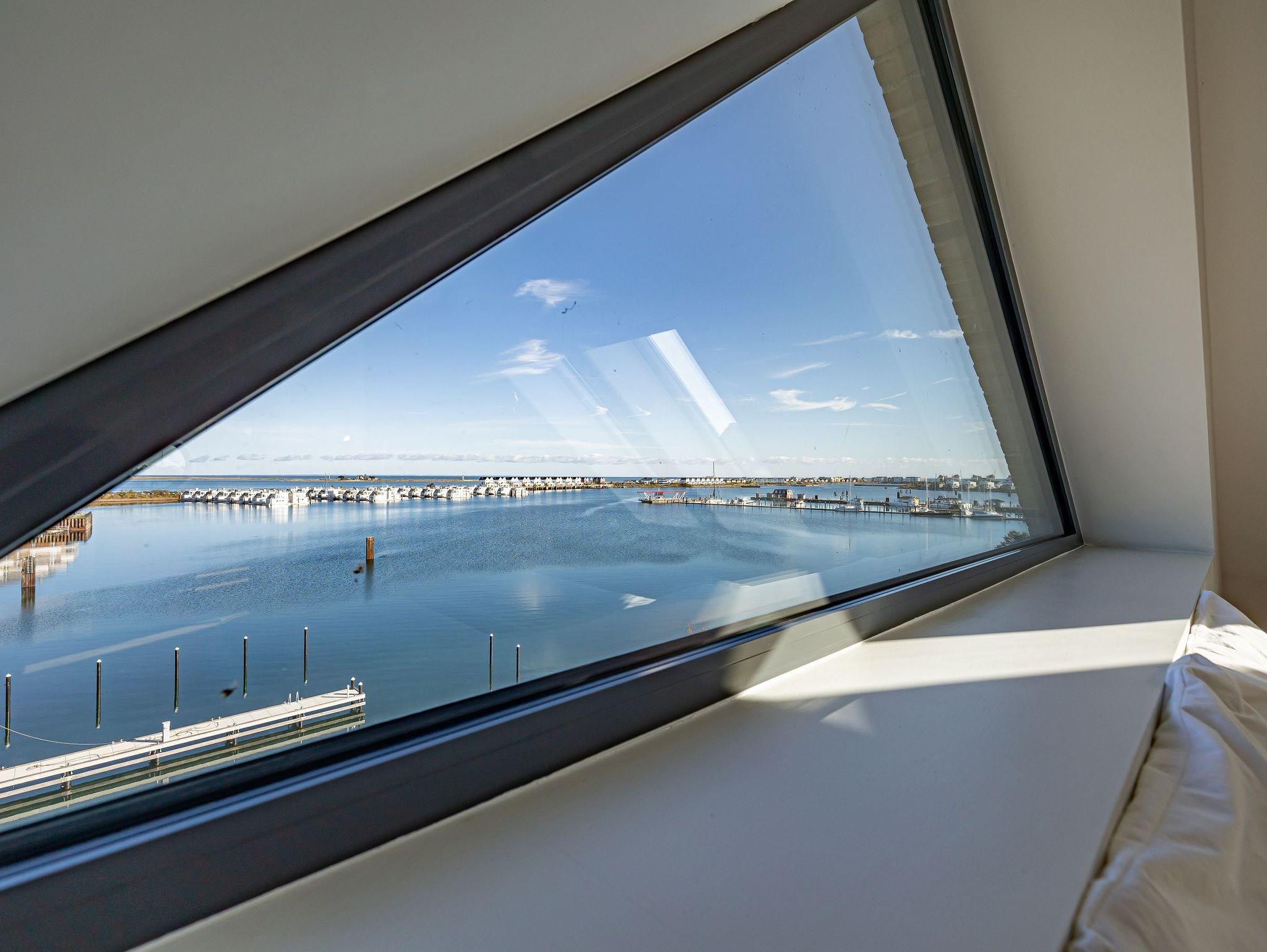 Genießen Sie Luxus und Behaglichkeit in dieser exklusiven 126 m² großen Maisonette-Wohnung mit offenem Dachausbau, die Platz für bis zu 6 Personen bietet. Die moderne, voll ausgestattete Küche mit einem kreativen Wandbild lädt zum gemeinsamen Kochen und Verweilen ein. Im stilvoll eingerichteten Wohnbereich mit Kamin erwartet Sie eine gemütliche Atmosphäre, begleitet von einem beeindruckenden Panoramablick auf den Hafen, Schleimünde mit seinem Leuchtturm und die Ostsee.