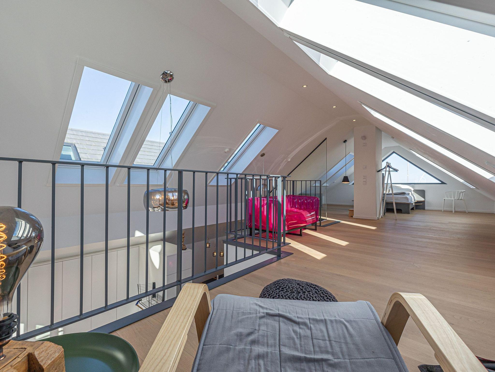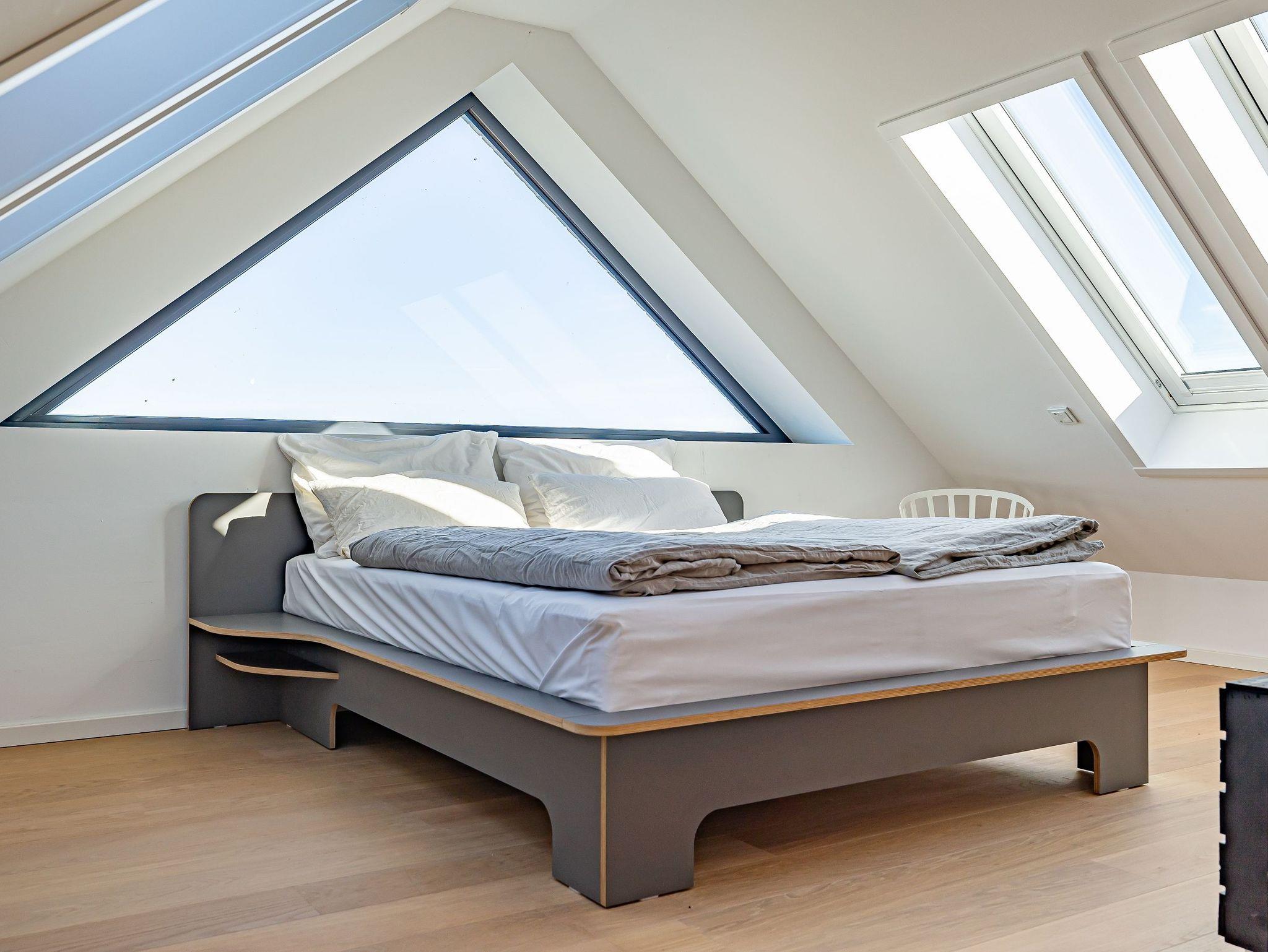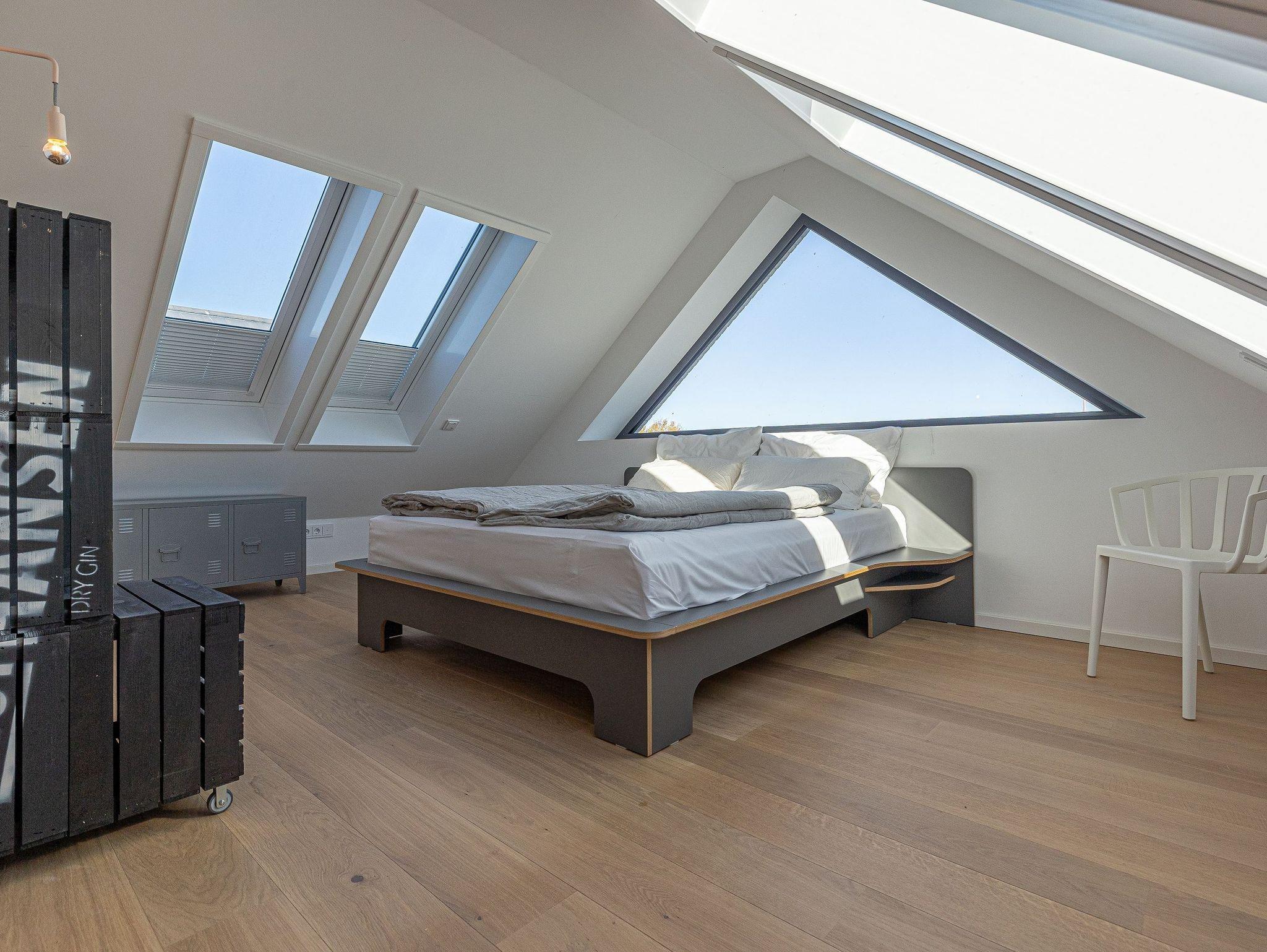 Der offene Dachausbau, durchflutet von Tageslicht und ausgestattet mit großen Fenstern, vermittelt ein unvergleichliches Wohngefühl. Hier befindet sich ein komfortables Bett, von dem aus Sie die Schlei und Ostsee in Ruhe betrachten können.