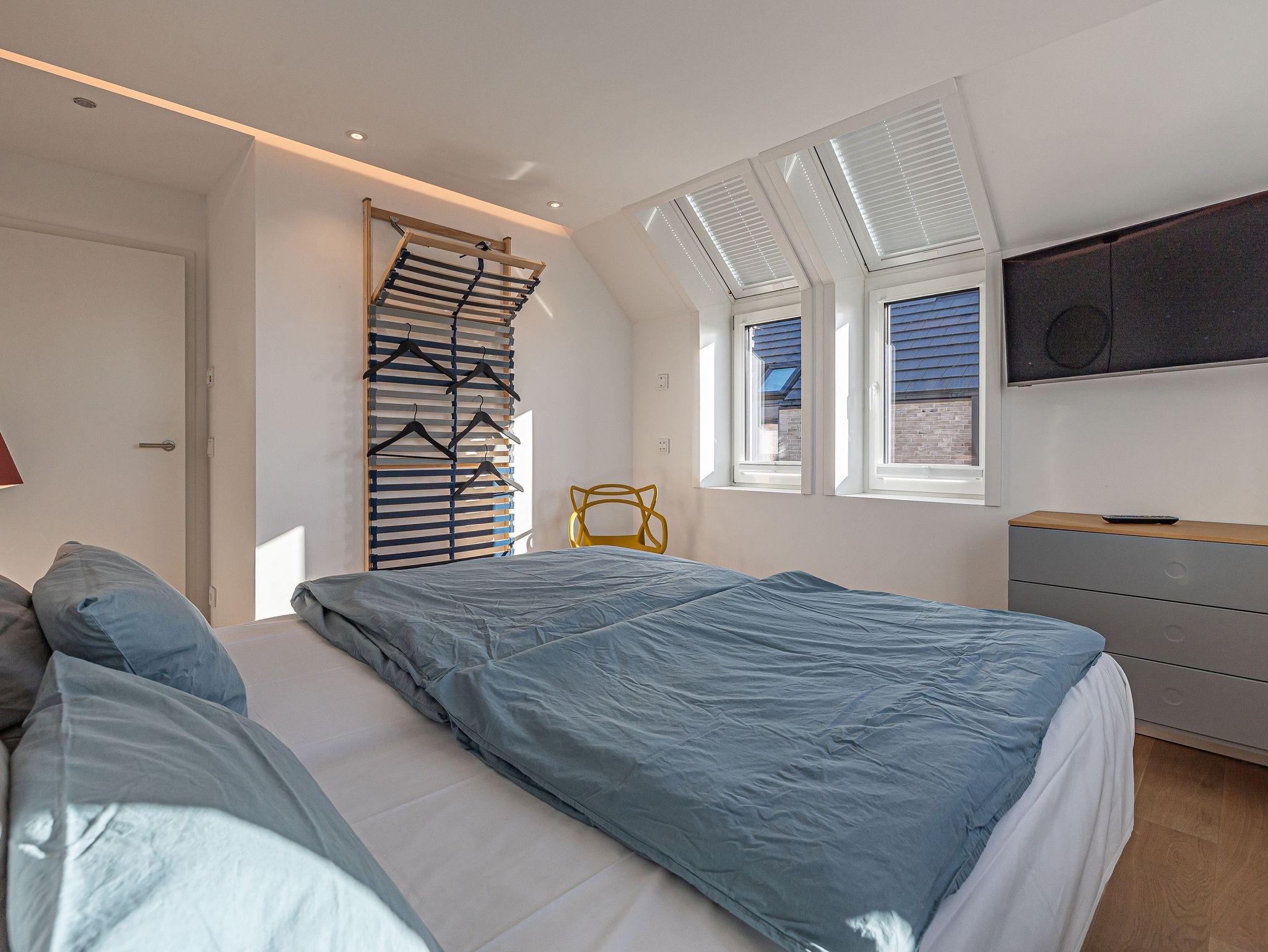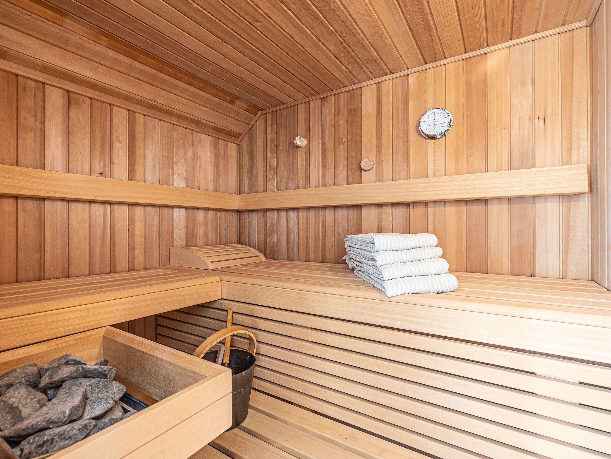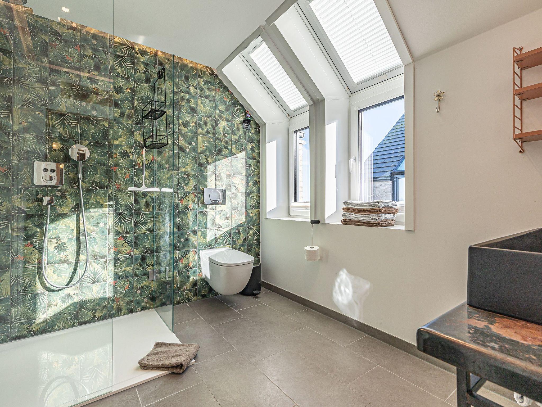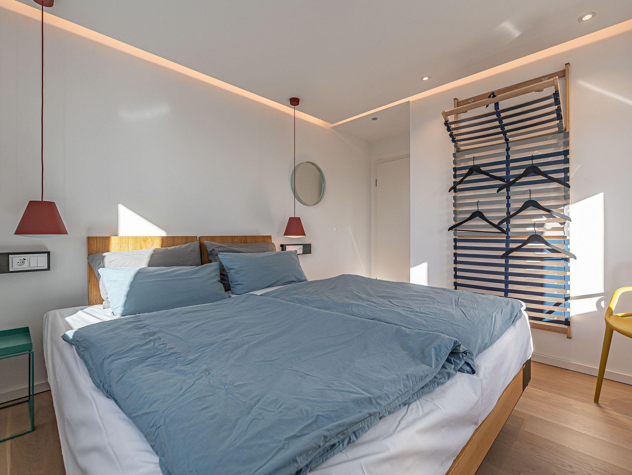 Zwei helle Schlafzimmer mit französischen Betten und jeweils eigenem Fernseher sorgen für erholsamen Schlaf. Ein zusätzliches Gäste-WC mit Waschmaschine und Trockner bringt zusätzlichen Komfort. Ihr privater Wellnessbereich, ausgestattet mit einer finnischen Sauna und einer bodengleichen Rainshower-Dusche, lädt zum Entspannen ein.