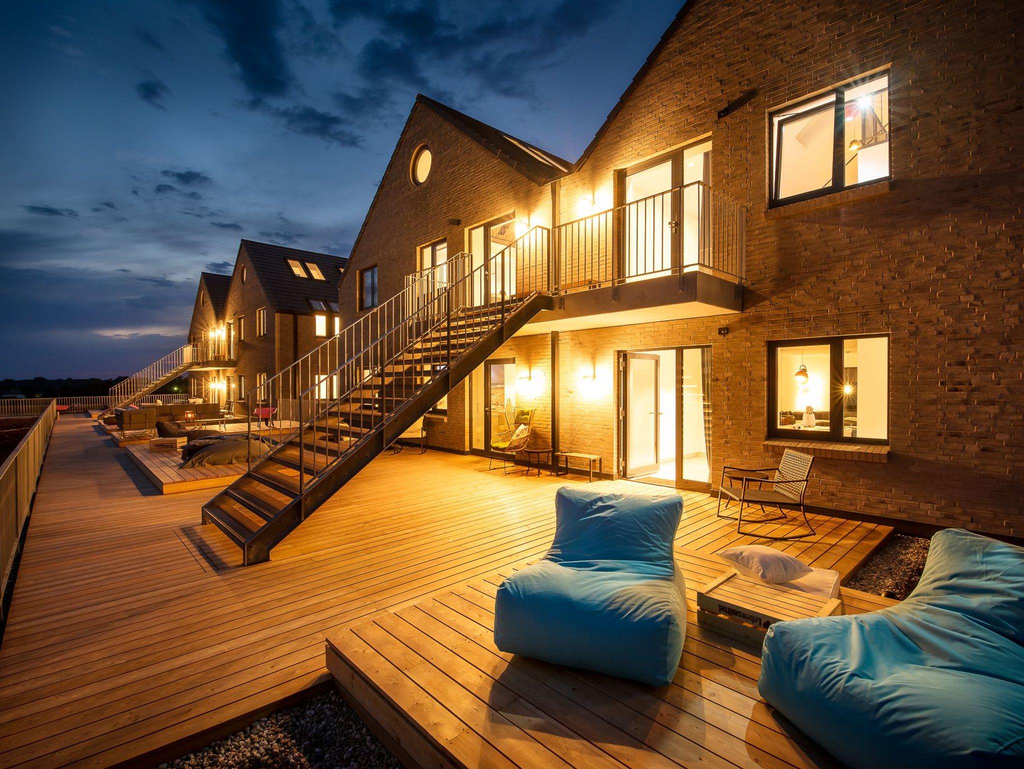 Im ersten Obergeschoss des Ostseeresorts Olpenitz gelegen, bieten diese Ferienwohnungen einen atemberaubenden Blick auf den Hafen, den charmanten Leuchtturm von Schleimünde und die Weiten der Ostsee. Mit dem hauseigenem Aufzug gelangen Sie mühelos zu Ihrer Ferienwohnung und zur großzügigen, 270 m² großen Dachterrasse, die allen Gästen zur Verfügung steht der perfekte Ort, um die Aussicht und die Meeresbrise zu genießen.