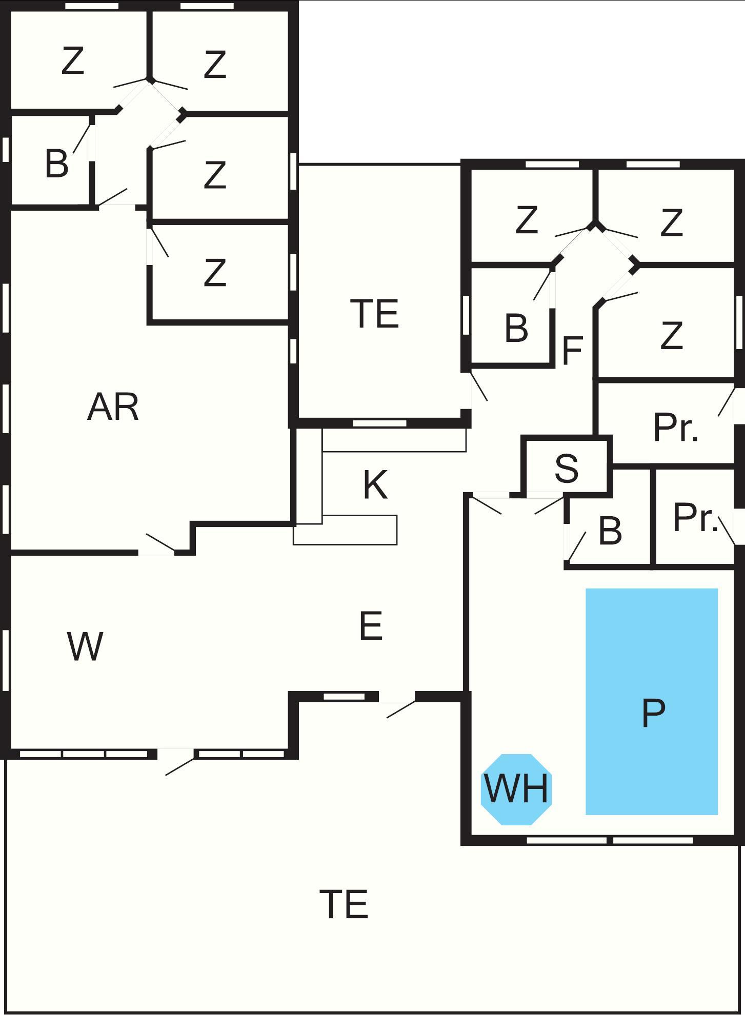 7 Schlafz.: (2B)+(2B)+(2B)+(2B)+(2B)+(2B)+(2B), Kinderbett