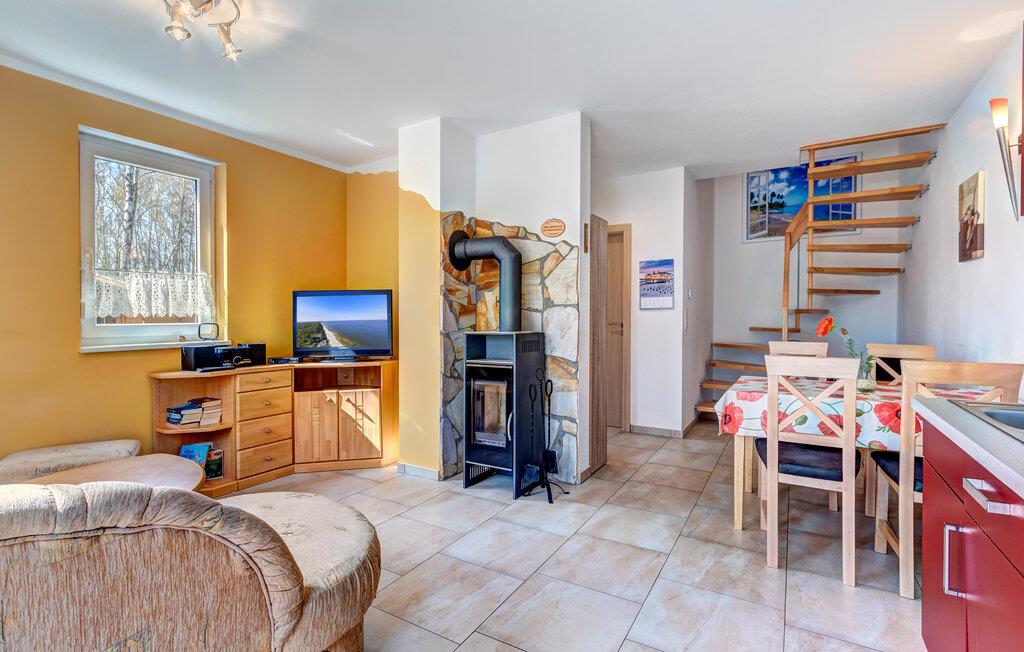 Die Ferienwohnung verfügt über ein Wohn-/Esszimmer (Polstermöbel mit Schlaffunktion (Möglichkeit einer Aufbettung für zwei Personen)), Esstisch, LCD-TV, Stereoanlage und Kamin. Es gibt eine offene Küchenzeile (komplett mit Spülmaschine, Elektroherd, Kühl-Gefrier-Kombination und Mikrowelle), 2 Schlafzimmer im Obergeschoss (1 x Doppelbett und LCD-TV/DVD, 1 x 2 Betten, zusätzliches Kinderbett), ein Badezimmer mit Dusche/WC im Obergeschoss, ein Gäste-WC auf im Erdgeschoss sowie Zentralheizung.