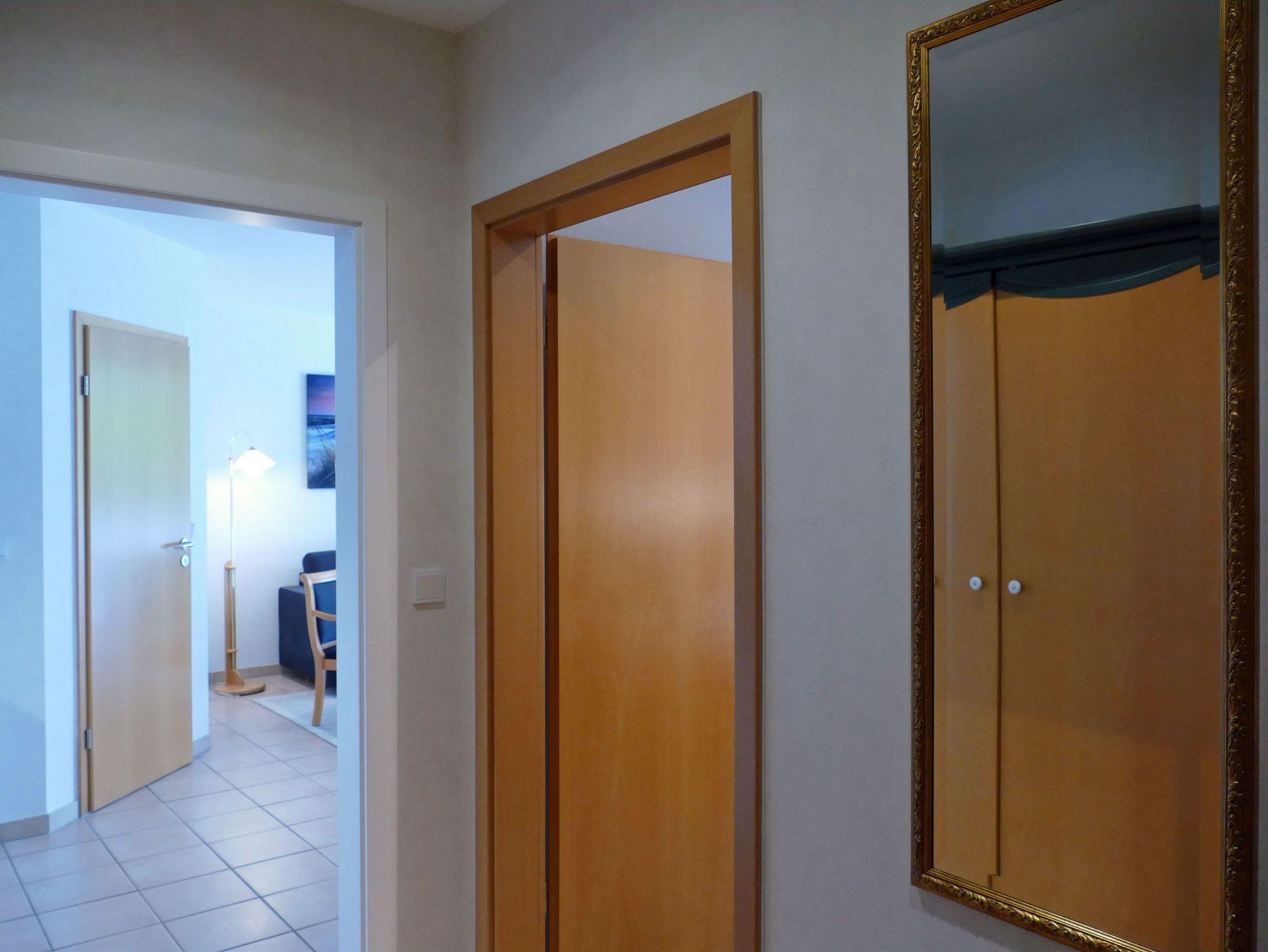 Im Flur der Wohnung finden Sie noch einen zusätzlichen Kleiderschrank, eine Garderobe und eine Abstellmöglichkeit für Ihr Gepäck.