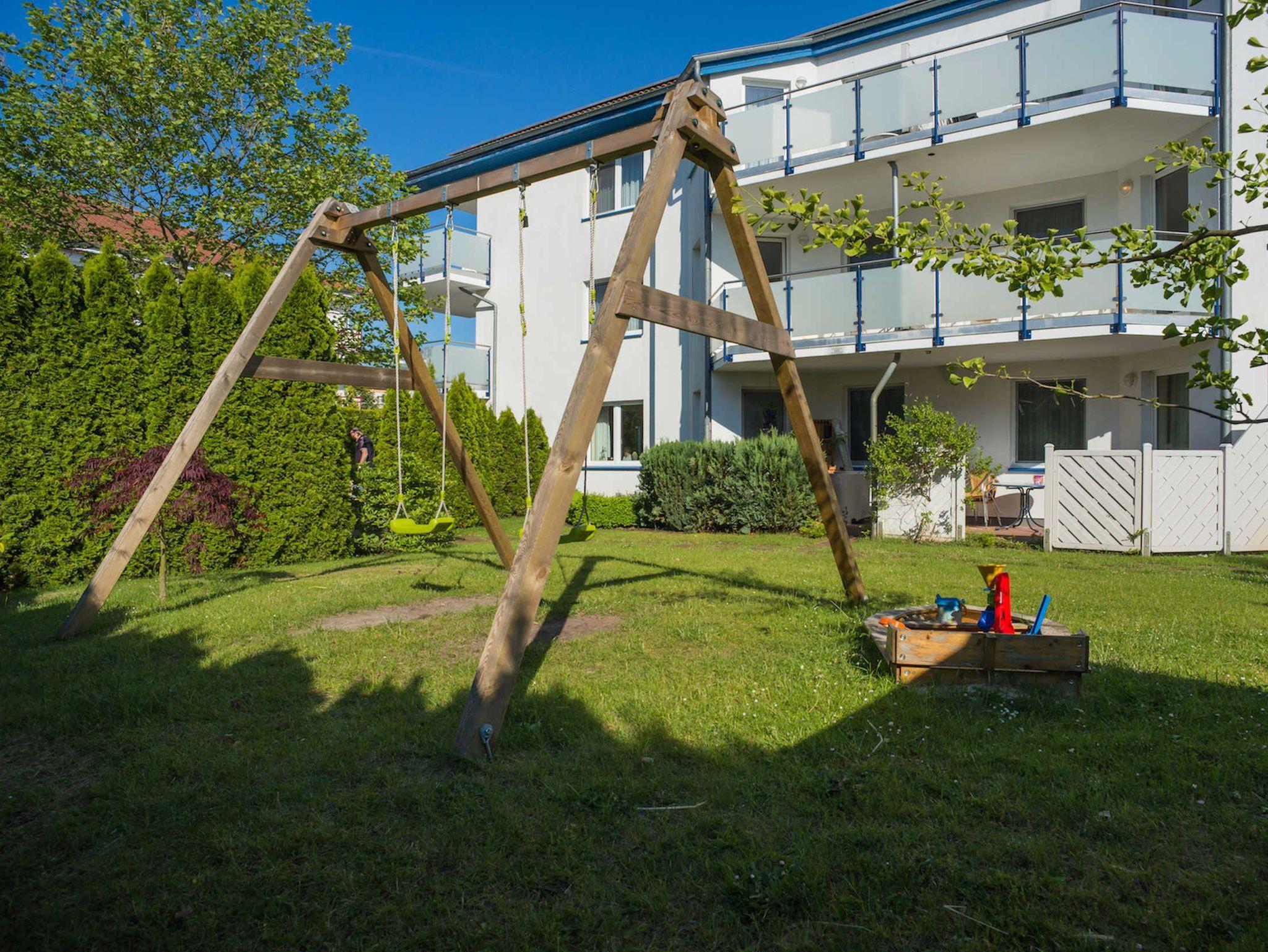 Hinter dem Haus steht allen Gästen ein kleiner Garten mit Gartenmöbeln, einer Schaukel und einem kleinen Sandkasten zur Verfügung. Von Frühling bis Herbst streifen Hasen und Wachteln durch ihren Stallbereich, der mit entsprechender Vorsicht betreten werden kann.
