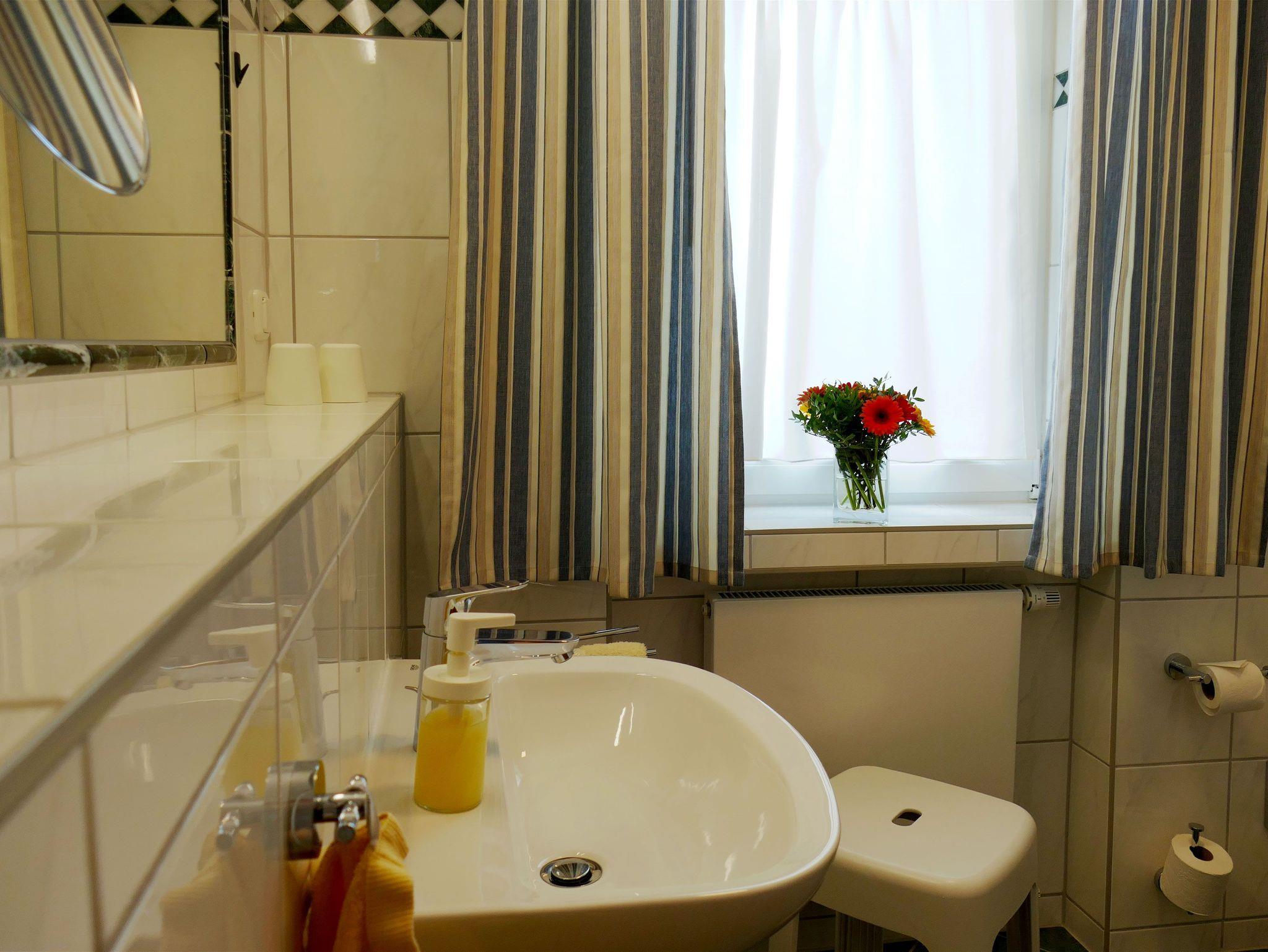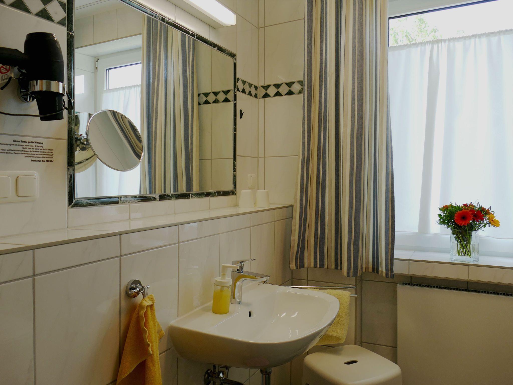 Bad mit Dusche, Waschtisch und WC