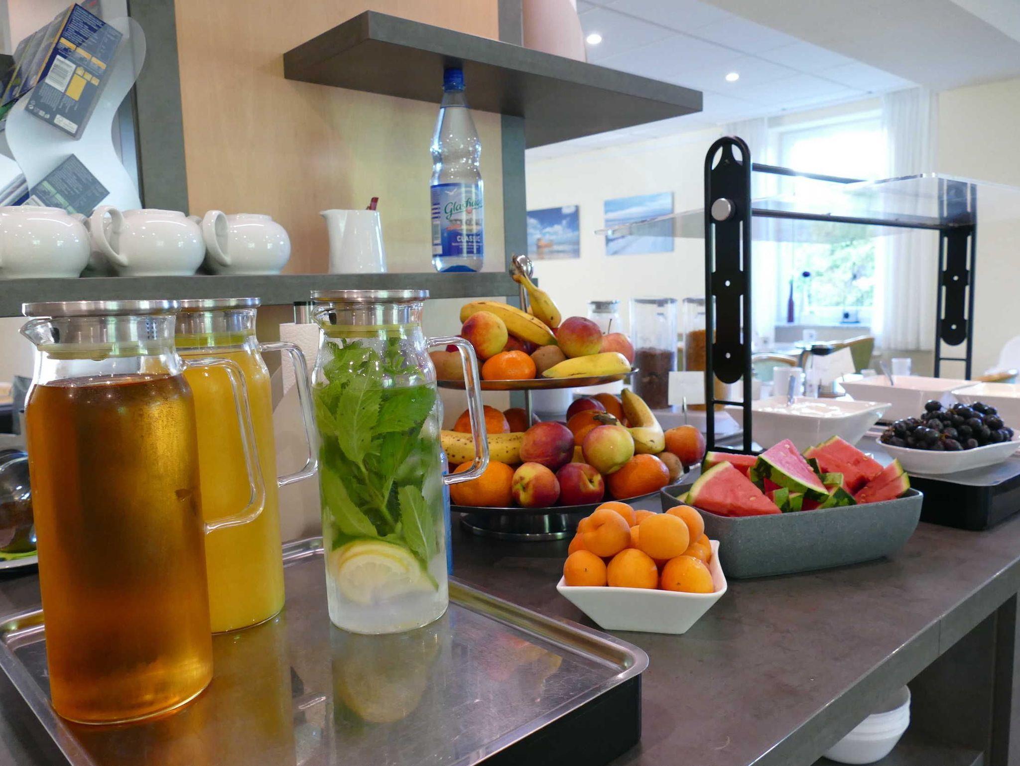 Für entspannte Erkundungstouren können Sie unsere guten Gelben Leihfahrräder zu einem vergünstigten Hausgastpreis nutzen. Bei einer Buchung von fünf Nächten oder länger begrüßen wir Sie mit einer Flasche Sekt oder, auf Wunsch, einer Alternative ein kleiner Willkommensgruß, der Ihnen den Start in den Urlaub versüßt.