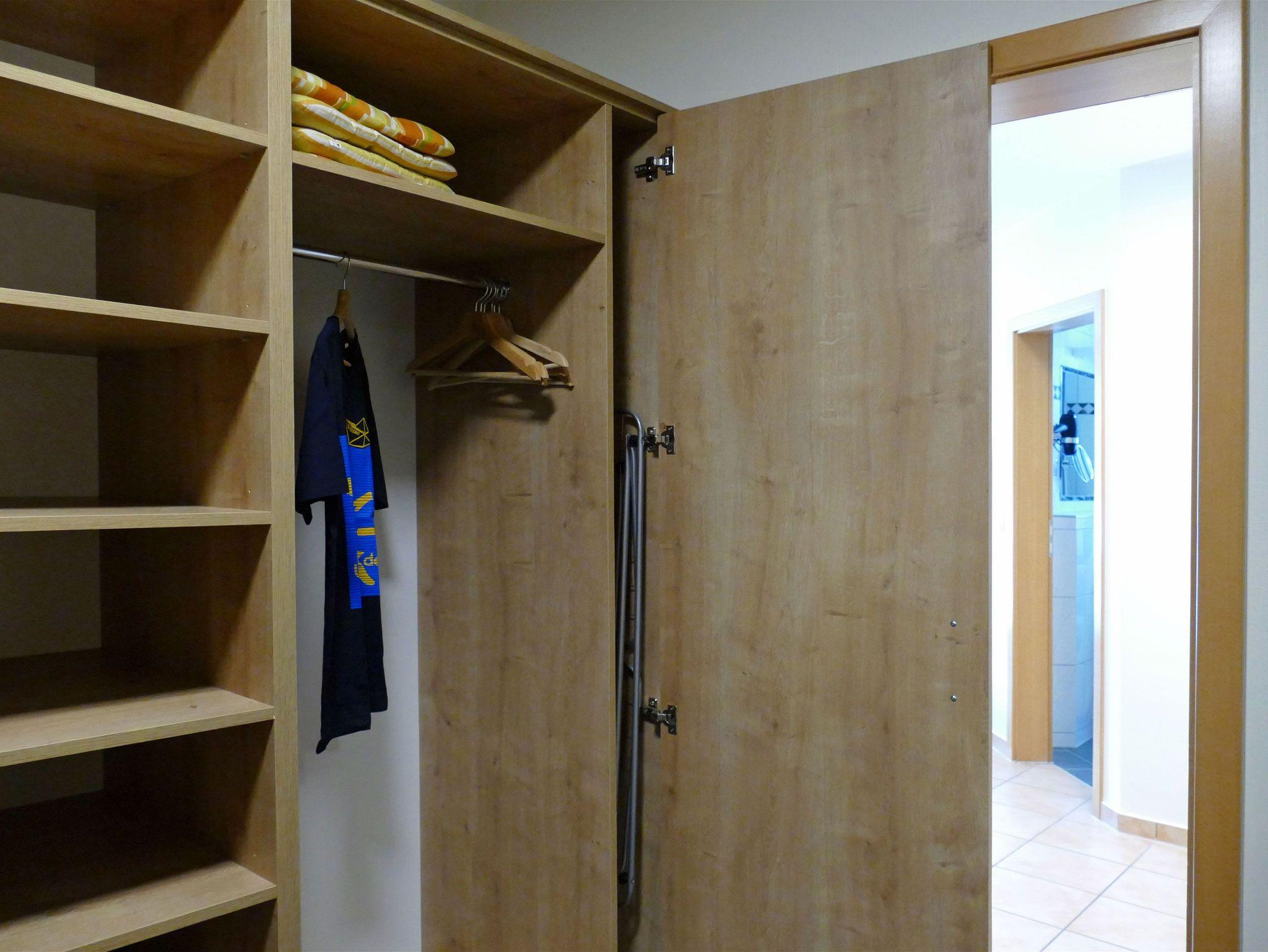 Der Flur bietet zusätzlichen Stauraum durch einen separaten Kleiderschrank und eine Garderobe. Auch für Ihr Gepäck gibt es eine Abstellmöglichkeit.
