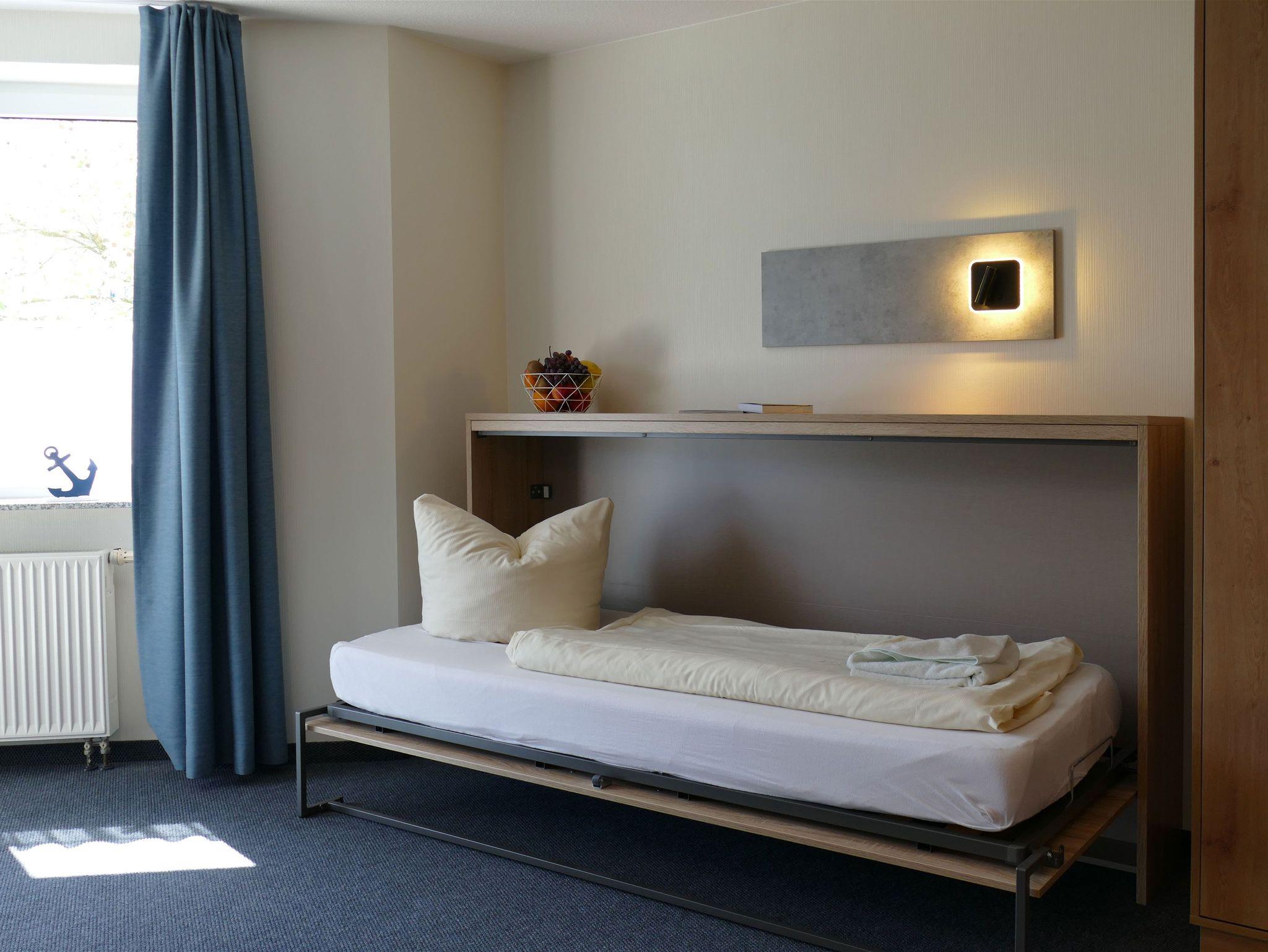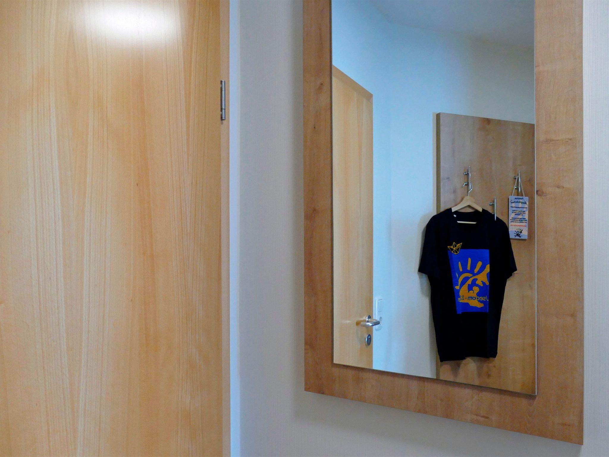 Im Flurbereich steht Ihnen ein kompakter Küchenblock mit Kühlschrank, Kaffeemaschine, Wasserkocher und Geschirr zur Verfügung ideal, um sich zwischendurch kleine Mahlzeiten selbst zuzubereiten. Eine Garderobe sowie zusätzliche Ablagemöglichkeiten sorgen für Ordnung und Bequemlichkeit während Ihres Aufenthalts.