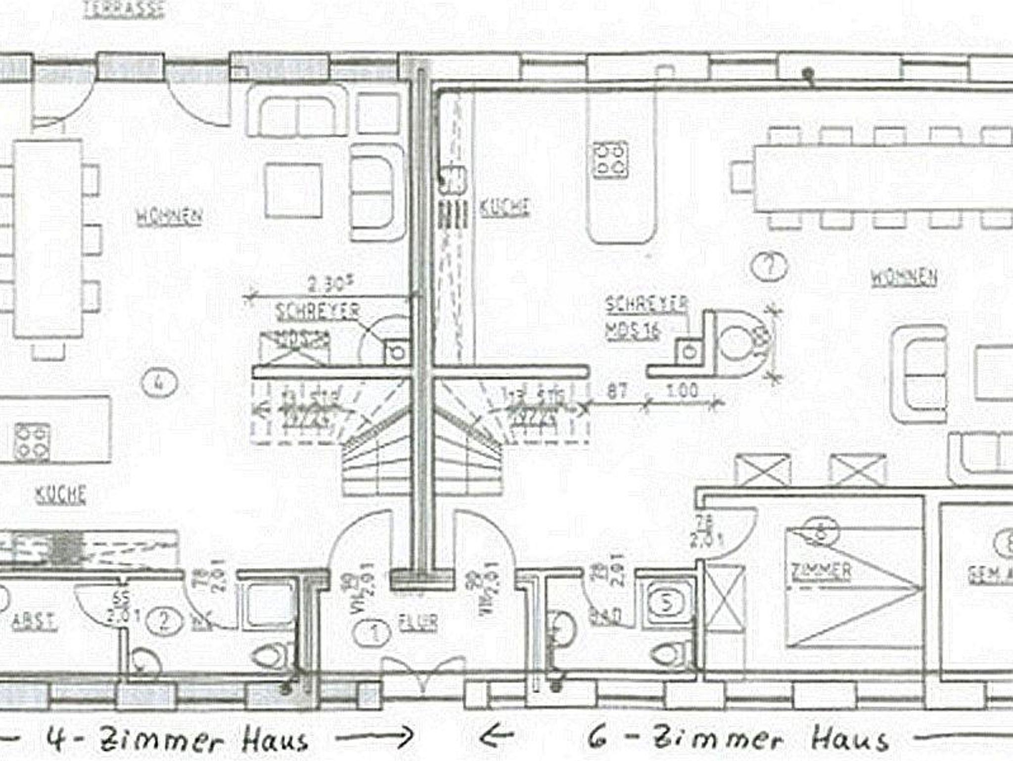 Beide Haushälften sind über einen gemeinsamen Flur verbunden, sodass Sie nur noch einmal kurz die antike Drehklingel drehen und Eintreten müssen.