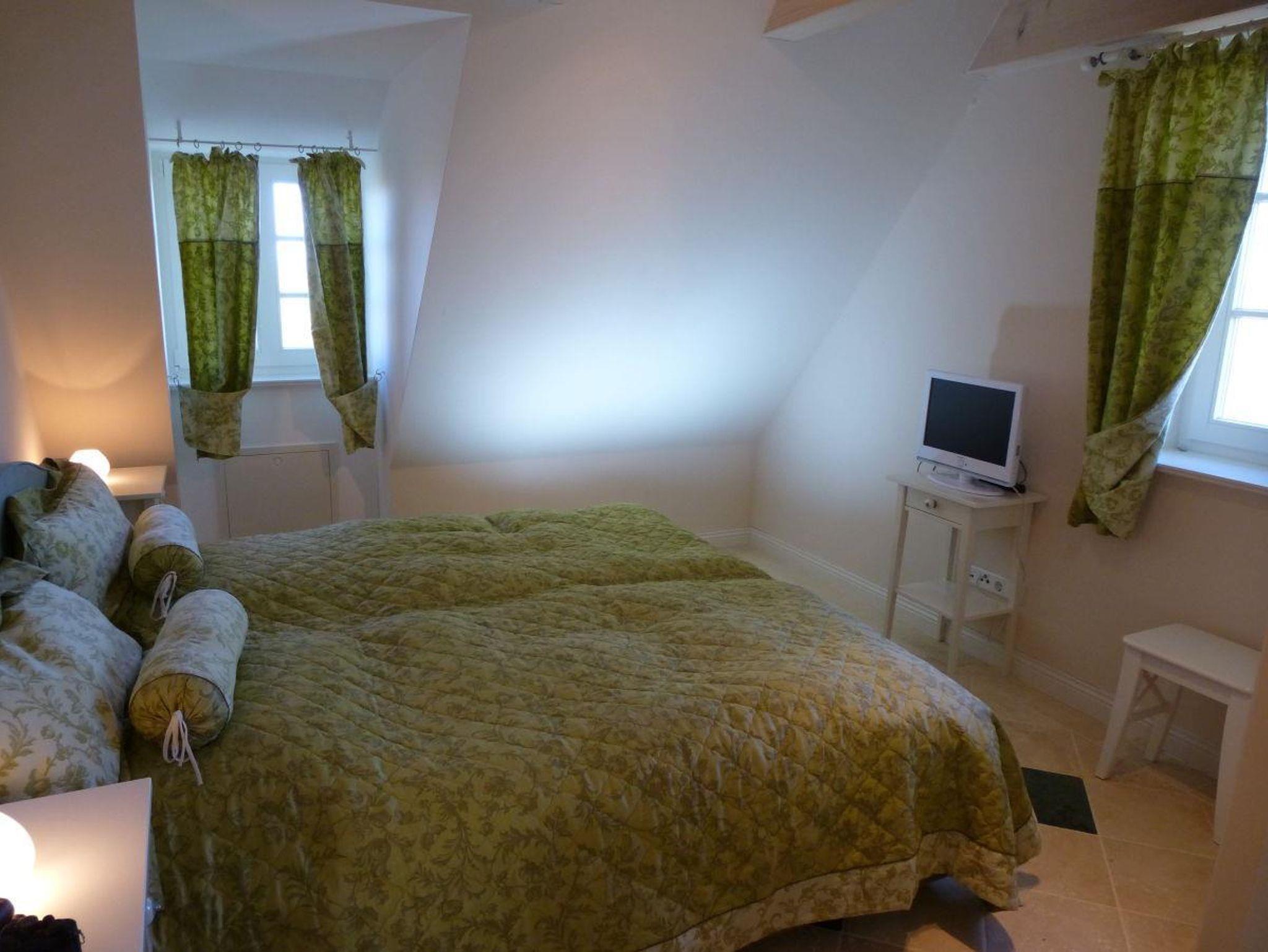 Die Doppelbetten sind hochwertige Boxspringbetten, die Überdecken und die passenden Gardinen sind von Laura Ashley.