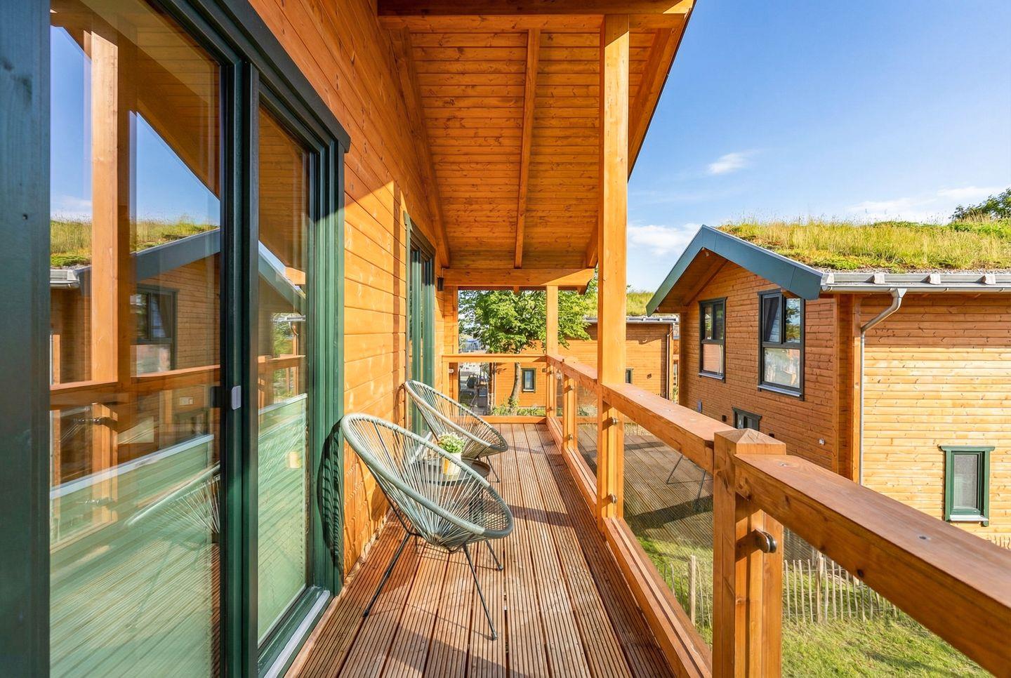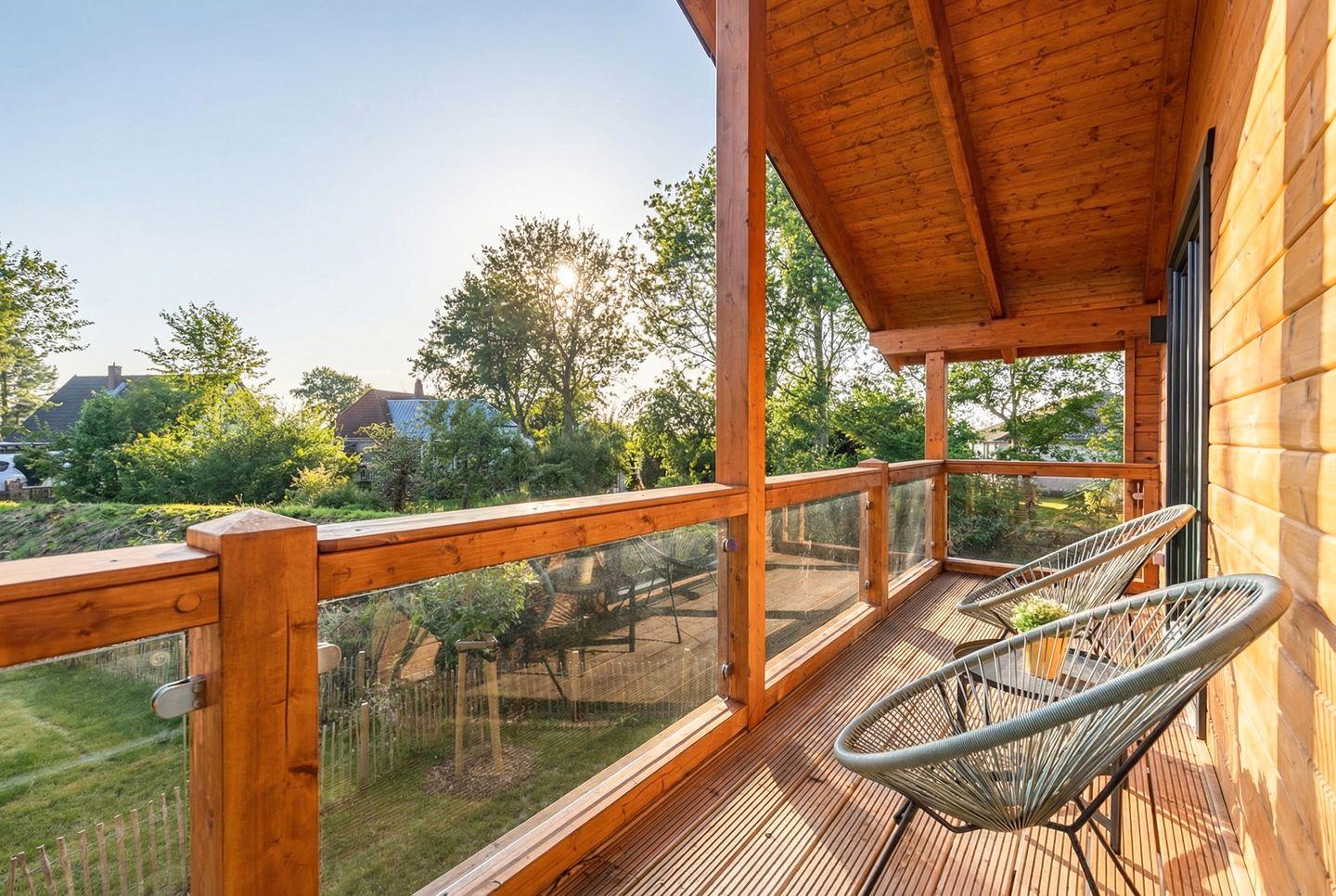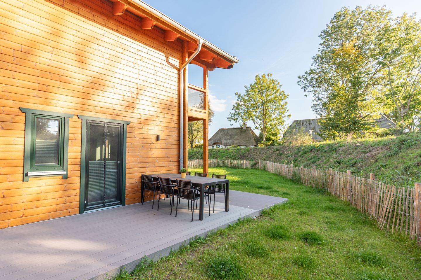 Gartenmöbel, ein Kugel-Holzkohlegrill, ein Strandkorb und ein Windschutz laden zu entspannten Stunden auf der Terrasse ein. Für Wellnessliebhaber steht eine eigene Sauna zur Verfügung – ideal, um nach einem aktiven Tag zur Ruhe zu kommen.