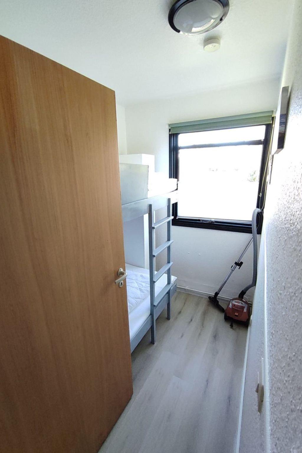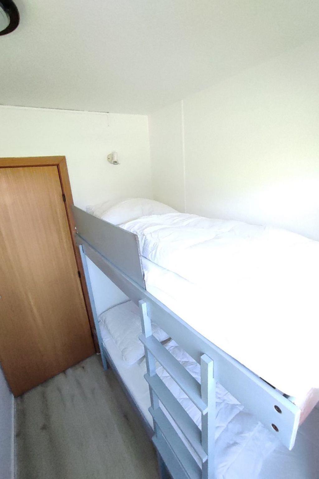 Our ground floor "newly furnished flat" has a bedroom with a cosy double bed (1.6x2.0m lying surface) and another bedroom with a bunk bed (85cmx195cm).