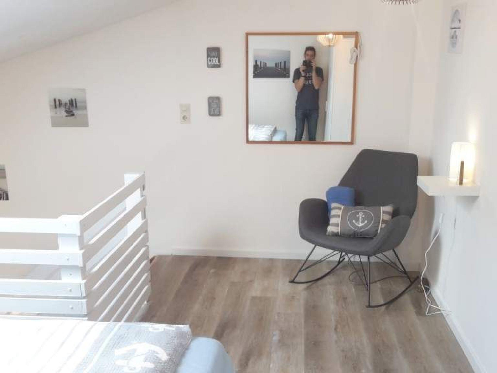 Relax in the beautiful Bay of Lübeck, right next to the forest and only 800 metres from the beach. In the small holiday complex "Am Walde" (consisting of 10 houses and 5 flats) there is also an own dog playground (pasture fence with 1.25 m height with toys) and of course a children's playground, so that 2 and 4-legged friends can have their fun and relax. Our "comfort flat" has a bedroom on an open gallery on the 1st floor with a cosy box spring bed (1.8x2.0m lying surface) and another bedroom with a box spring bed (80cmx200cm) and infrared sauna for your wellness time. A cosy living room with a new kitchen and a cute bathroom with shower round off your holiday realm. A private covered terrace and patio furniture are at your disposal.