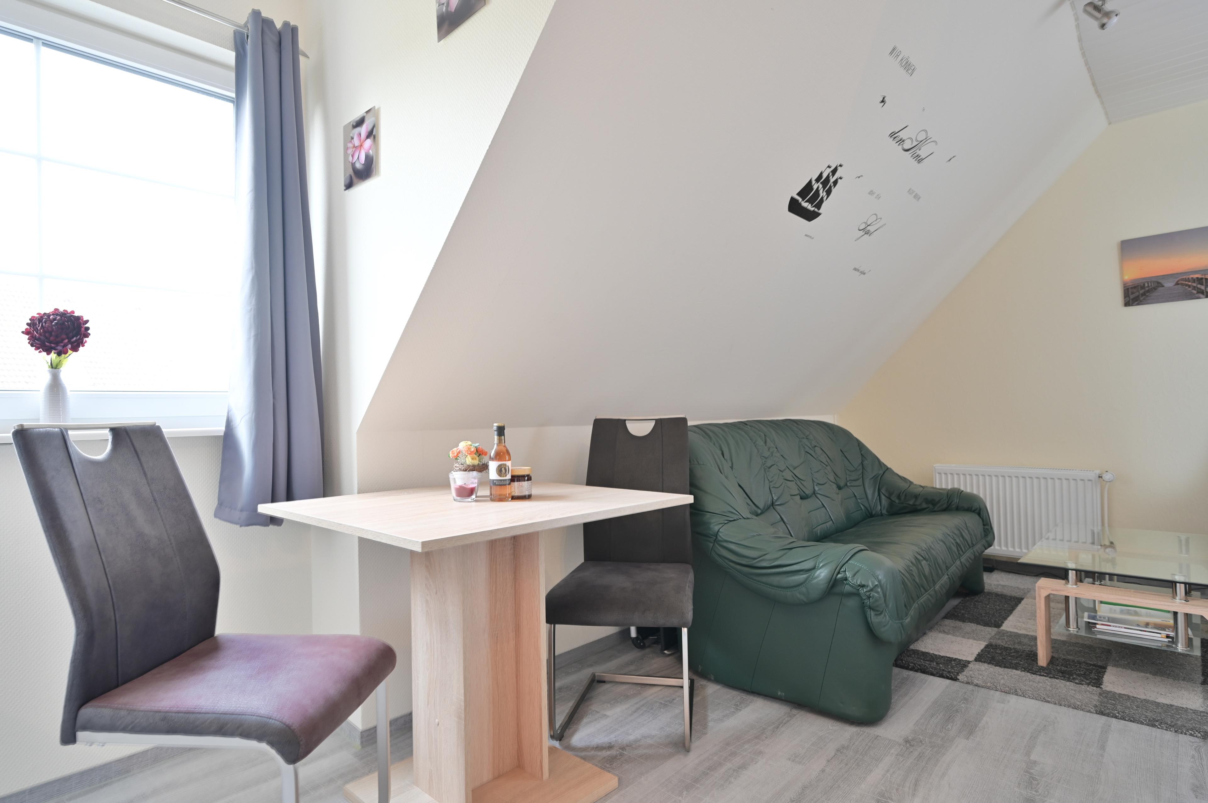Der Wohnbereich besteht aus einer Couch mit Couchtisch und einem Flachbild-TV. Angrenzend an den Wohnbereich befindet sich der Dachterrassenbereich (ca. 20qm) mit neuen Balkonmöbeln, Liegen und Grillecke was zum Verweilen einlädt.