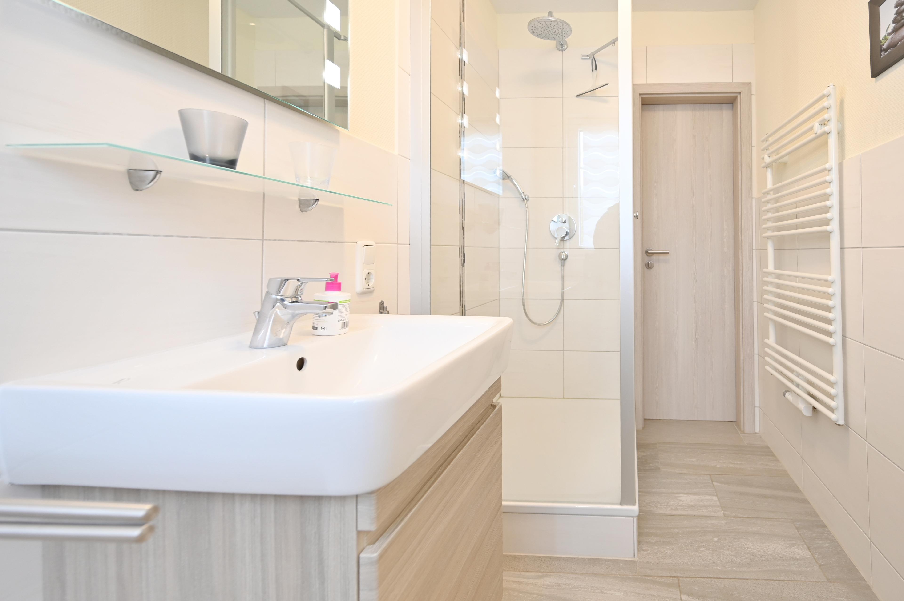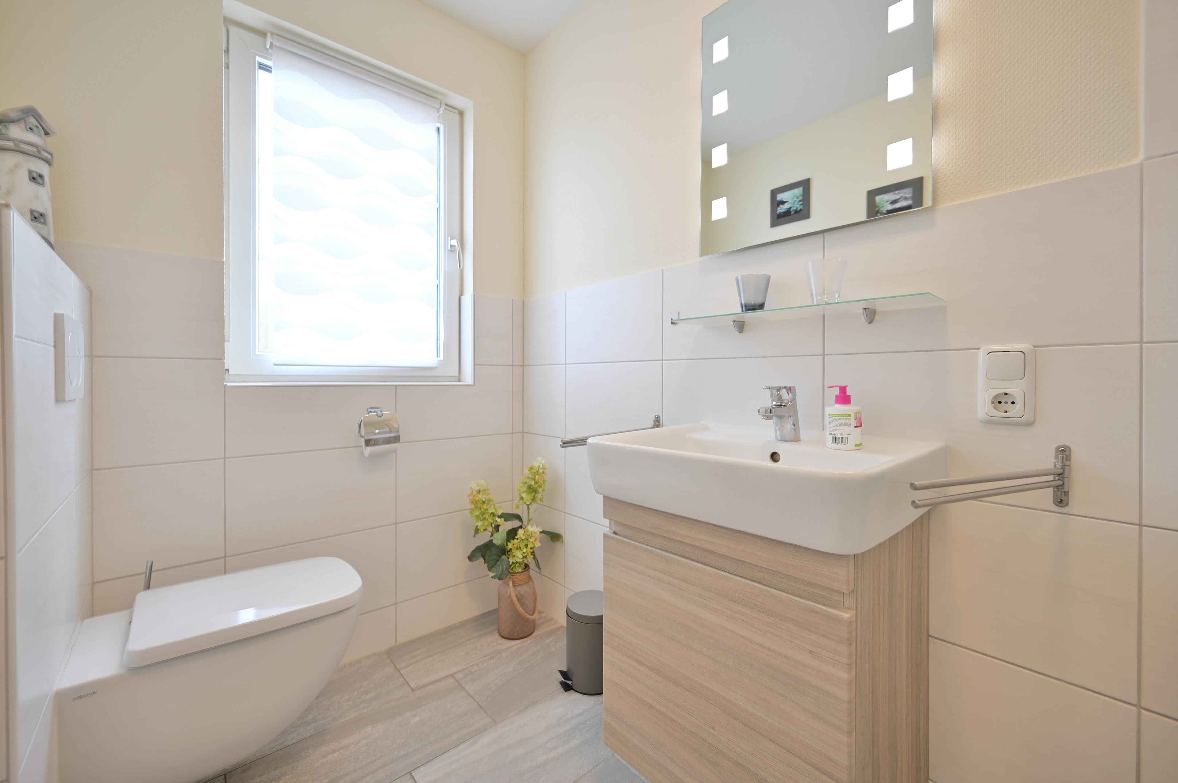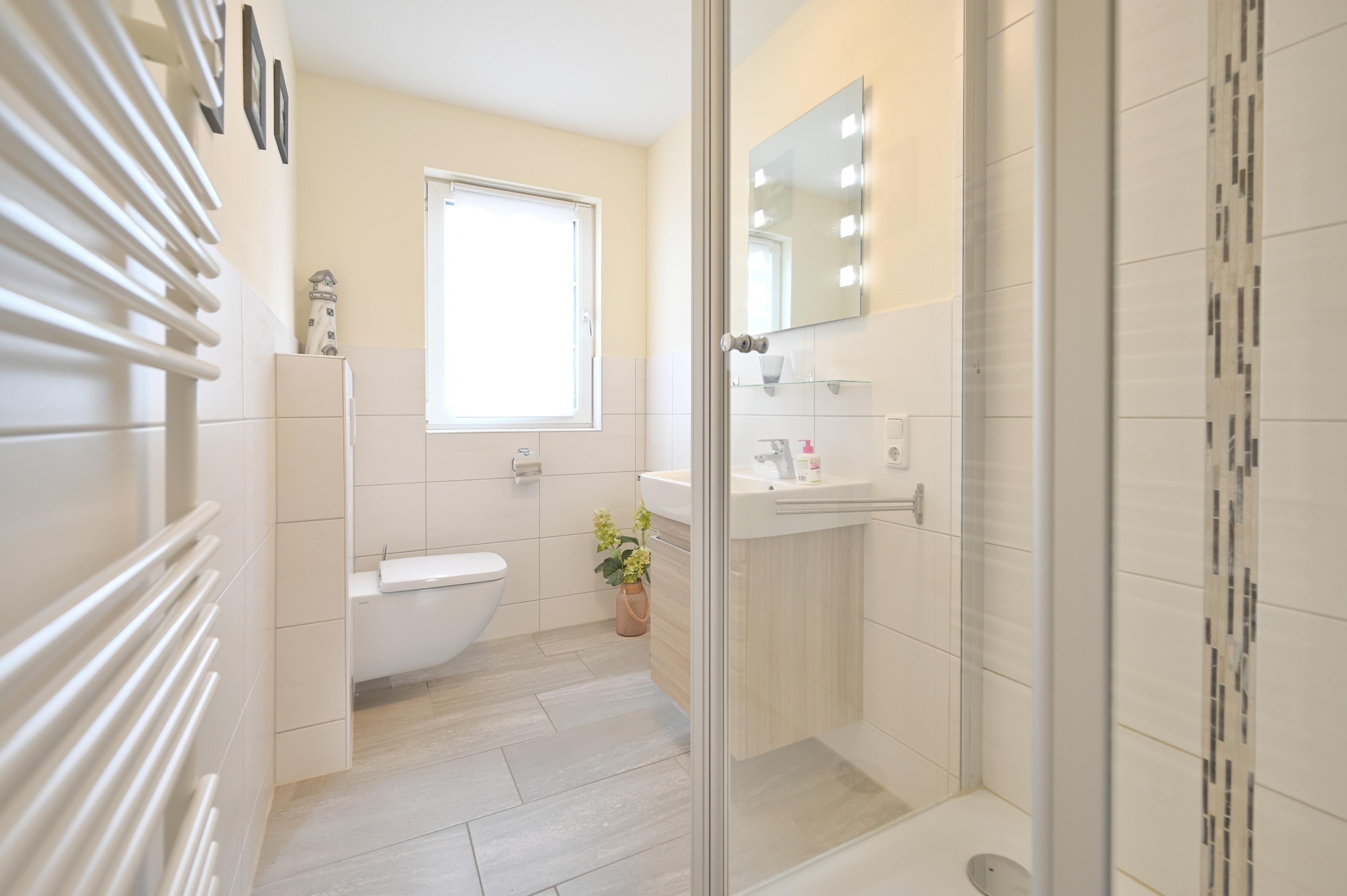 Das Badezimmer verfügt über ein Außenfenster zum Lüften und wurde im Jahr 2017 neu renoviert und besteht aus einer Dusche mit WC.
