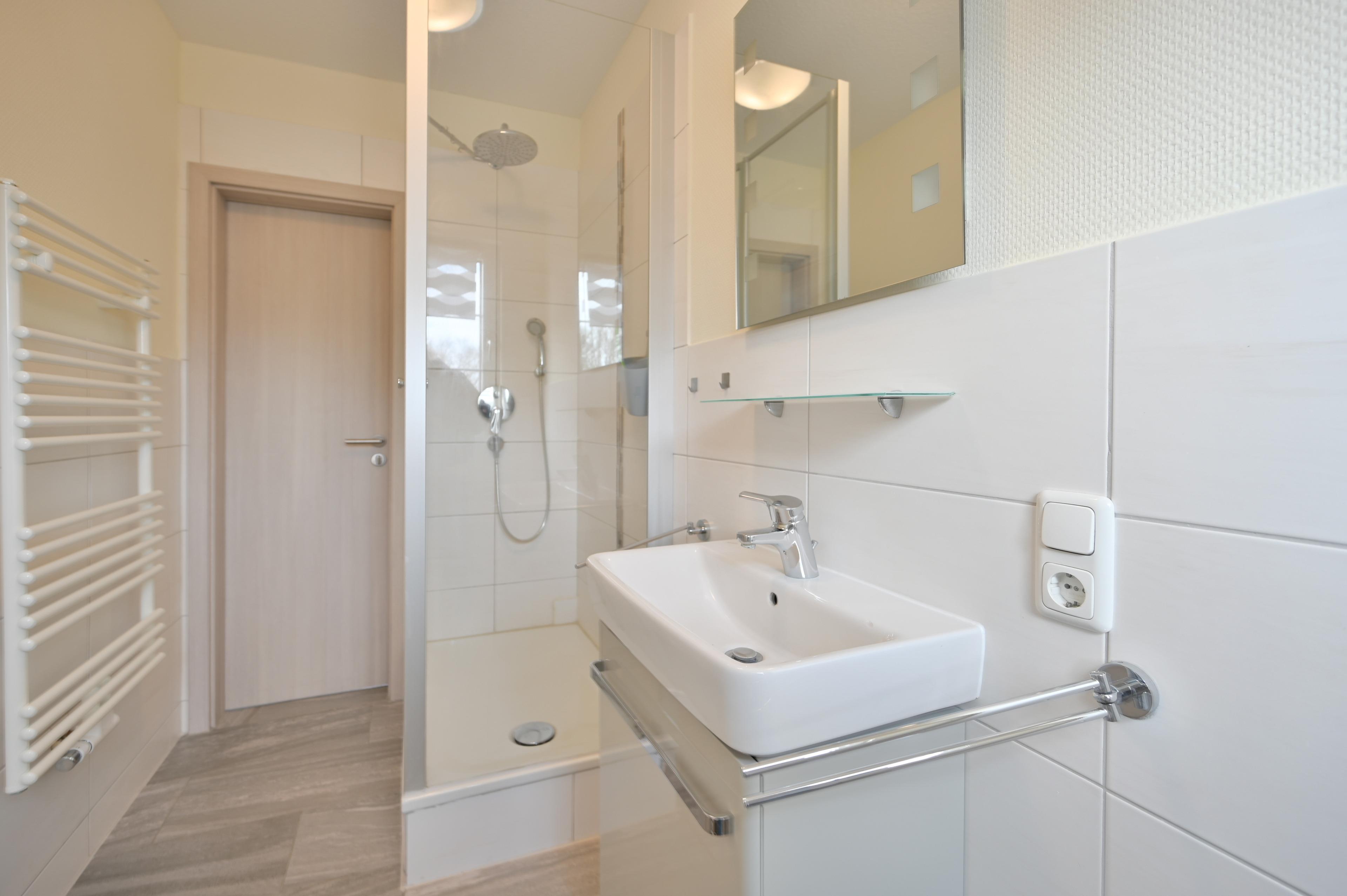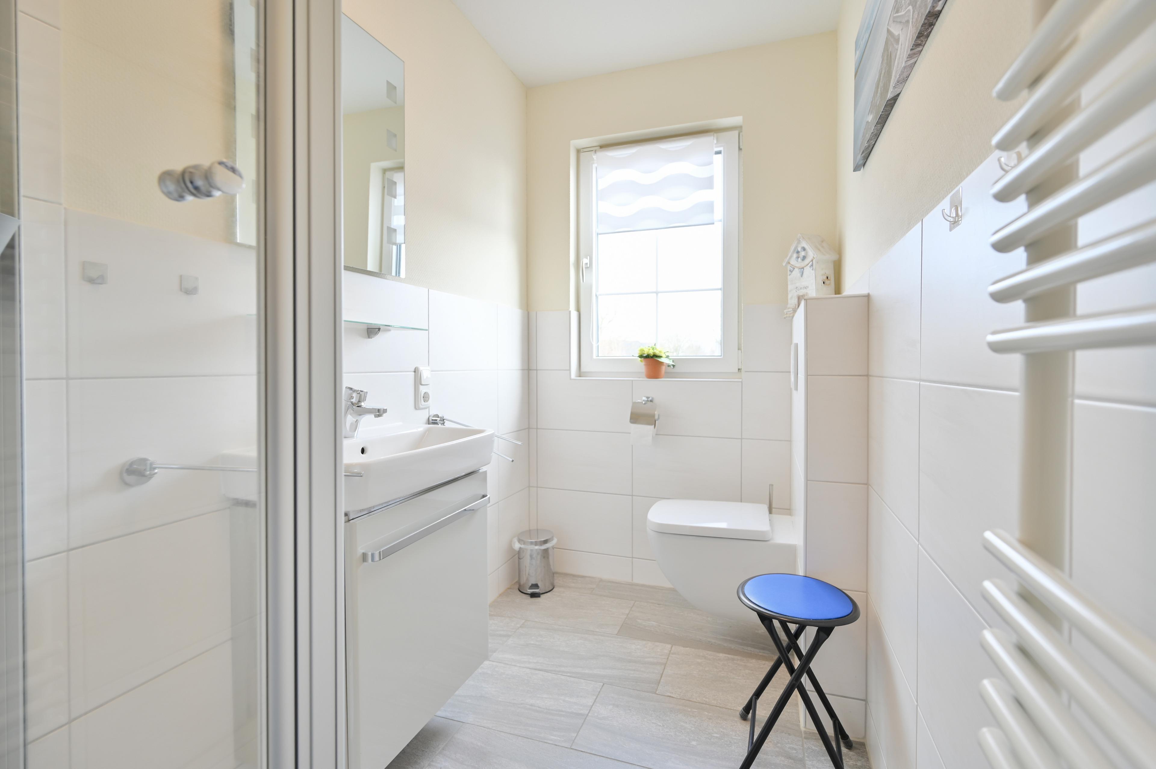 Das Badezimmer verfügt über ein Außenfenster zum Lüften und wurde im Jahr 2017 neu renoviert und besteht aus einer Dusche mit WC.