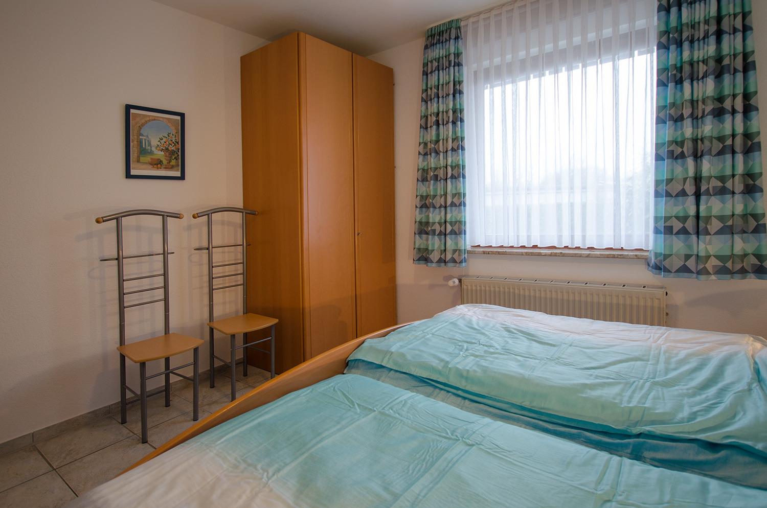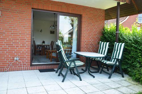 Außerdem verfügt die Ferienwohnung über einen Flur mit Garderobe, ein Duschbad mit WC und eine 15qm große möblierte Terrasse, die vom Wohnzimmer aus begehbar ist.