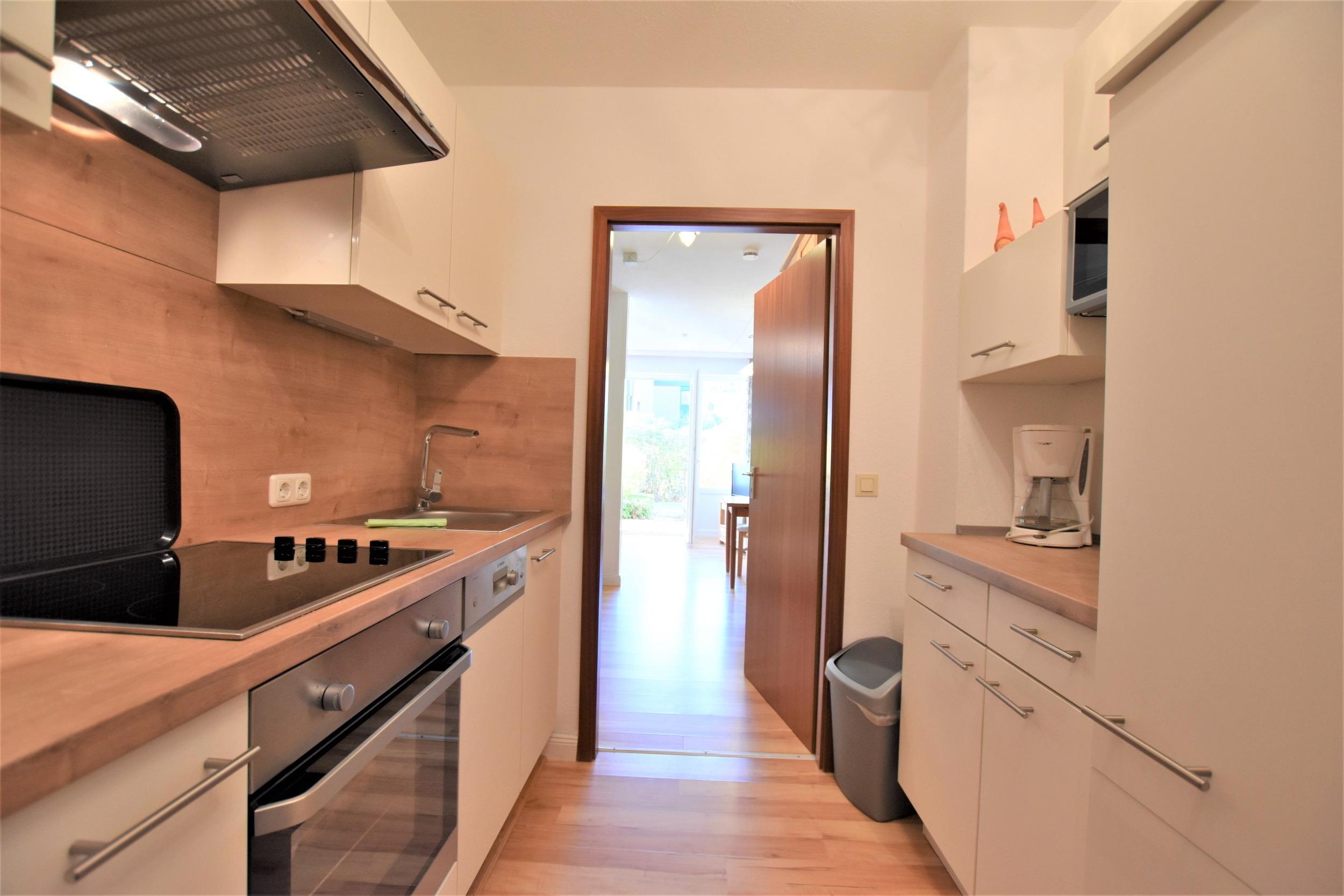 In der Küche finden Sie neben einem Herd mit Ceranfeld 4 Kochfeldern und Backofen, eine Spülmaschine, eine Mikrowelle, eine Kaffeemaschine, einen Wasserkocher und einen Toaster.