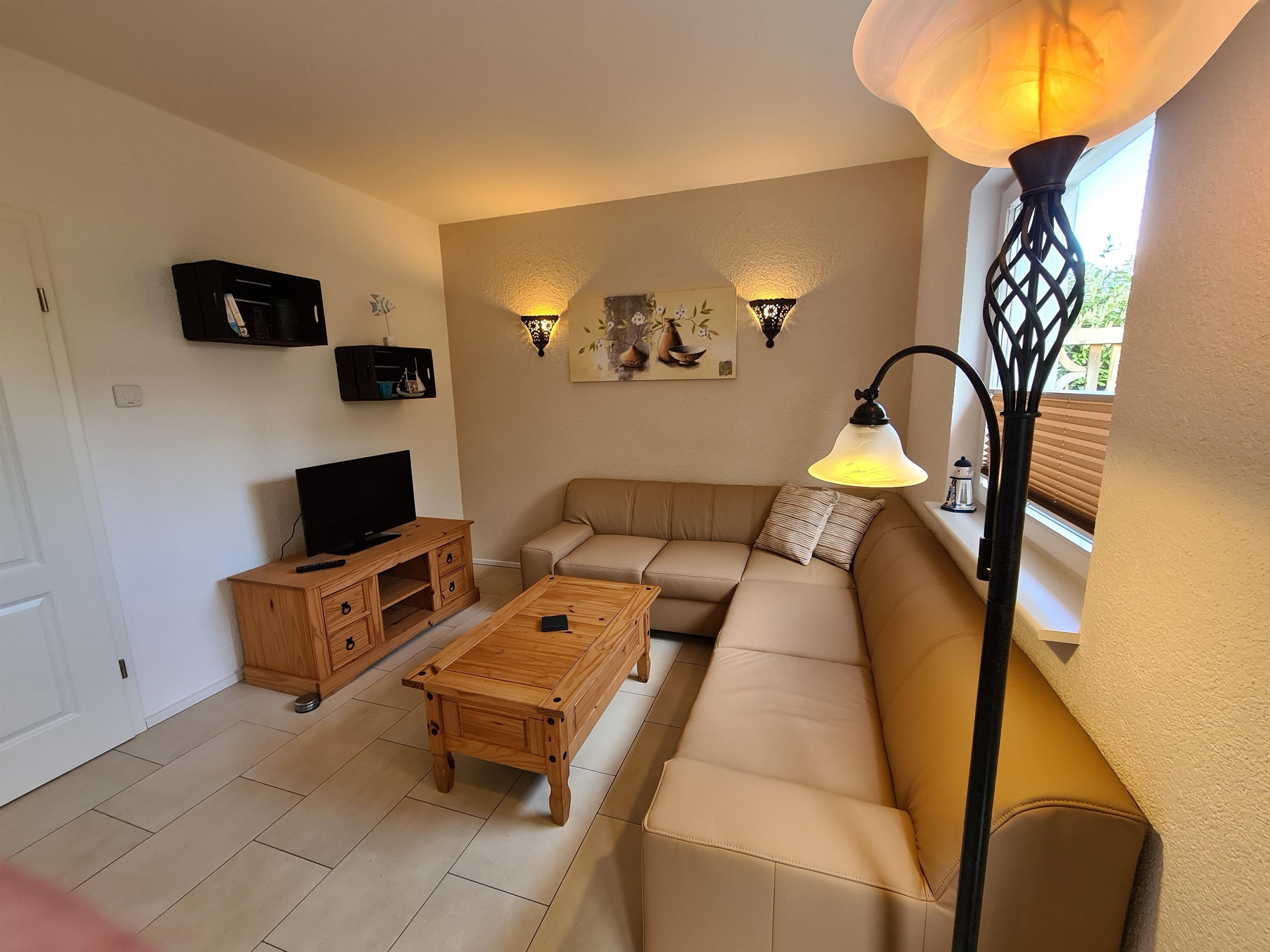 Das Haus befindet sich im ruhig gelegenen Bereich des Grundstücks und nur ca. 450 Meter vom Strand entfernt. Aufgeteilt ist Ihr Ferienobjekt im Erdgeschoss in Eingangsbereich mit Flur und Abstellraum, WC , Waschmaschine kostenpflichtig, Wohnzimmer mit Essbereich und offener Küche. Im Obergeschoss befinden sich ein Schlafzimmer mit Doppelbett, ein Kinderzimmer mit zwei Einzelbetten und ein schönes Duschbad mit begehbarer Dusche.